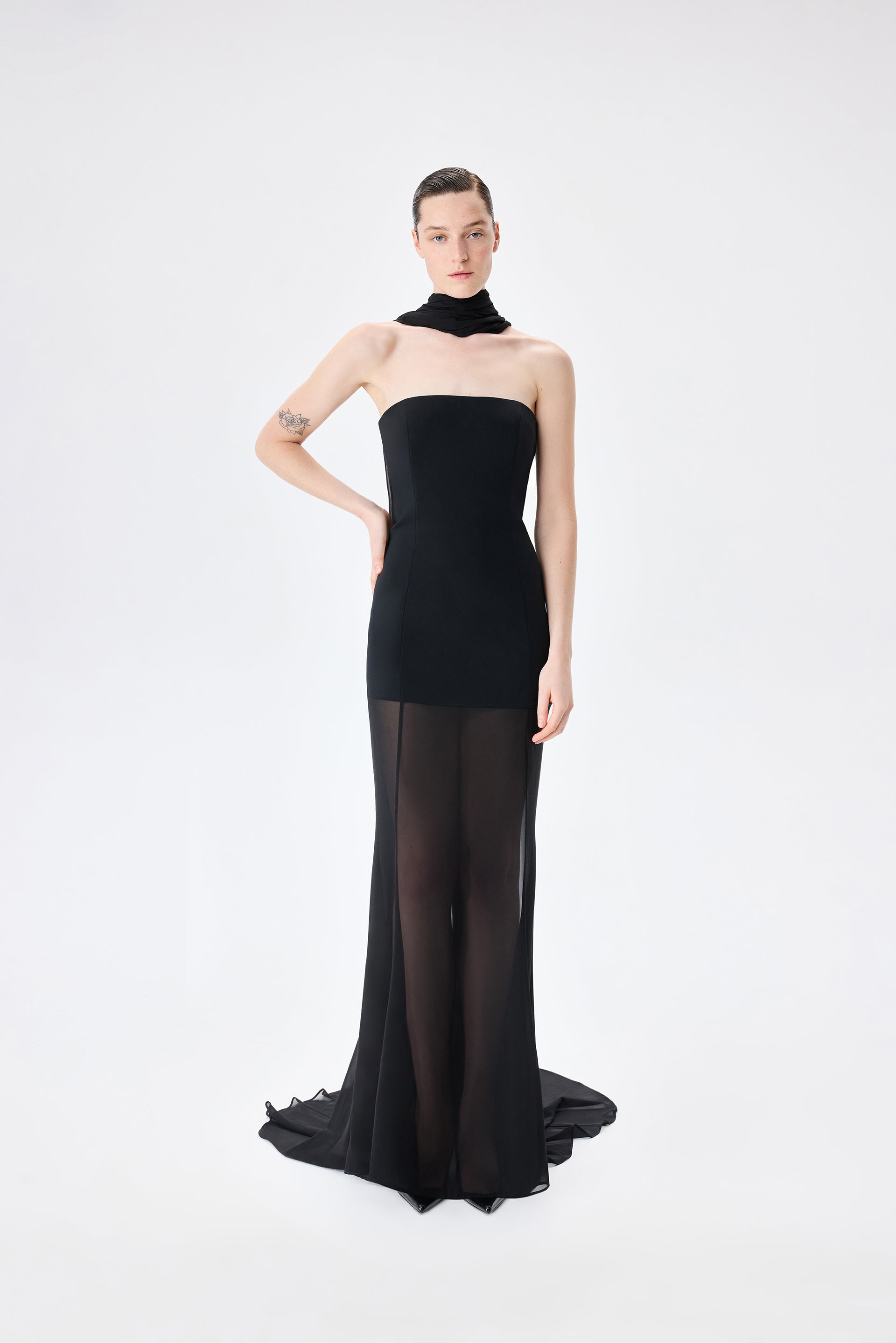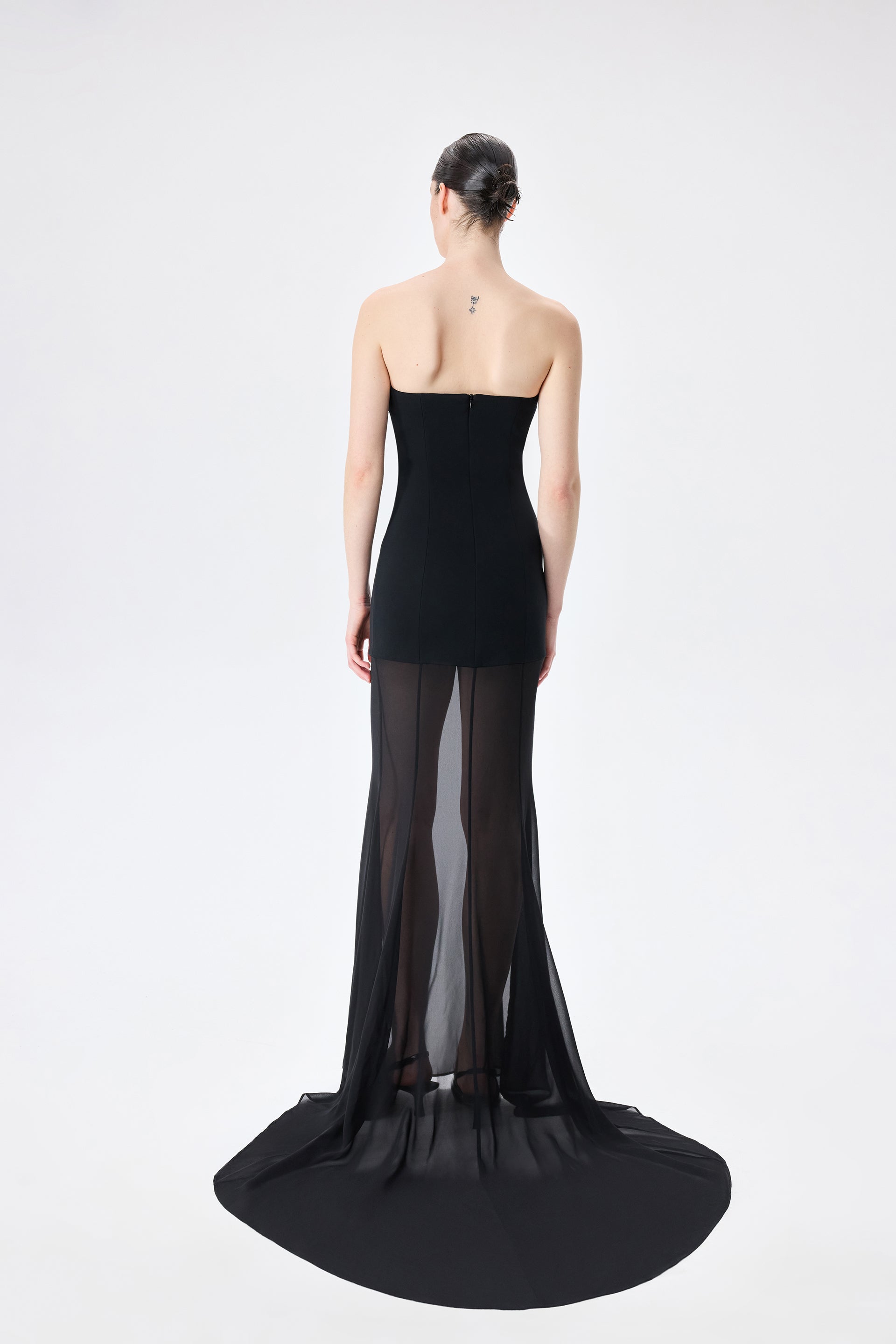 Isabel - Strapless Chiffon Maxi Dress in Black