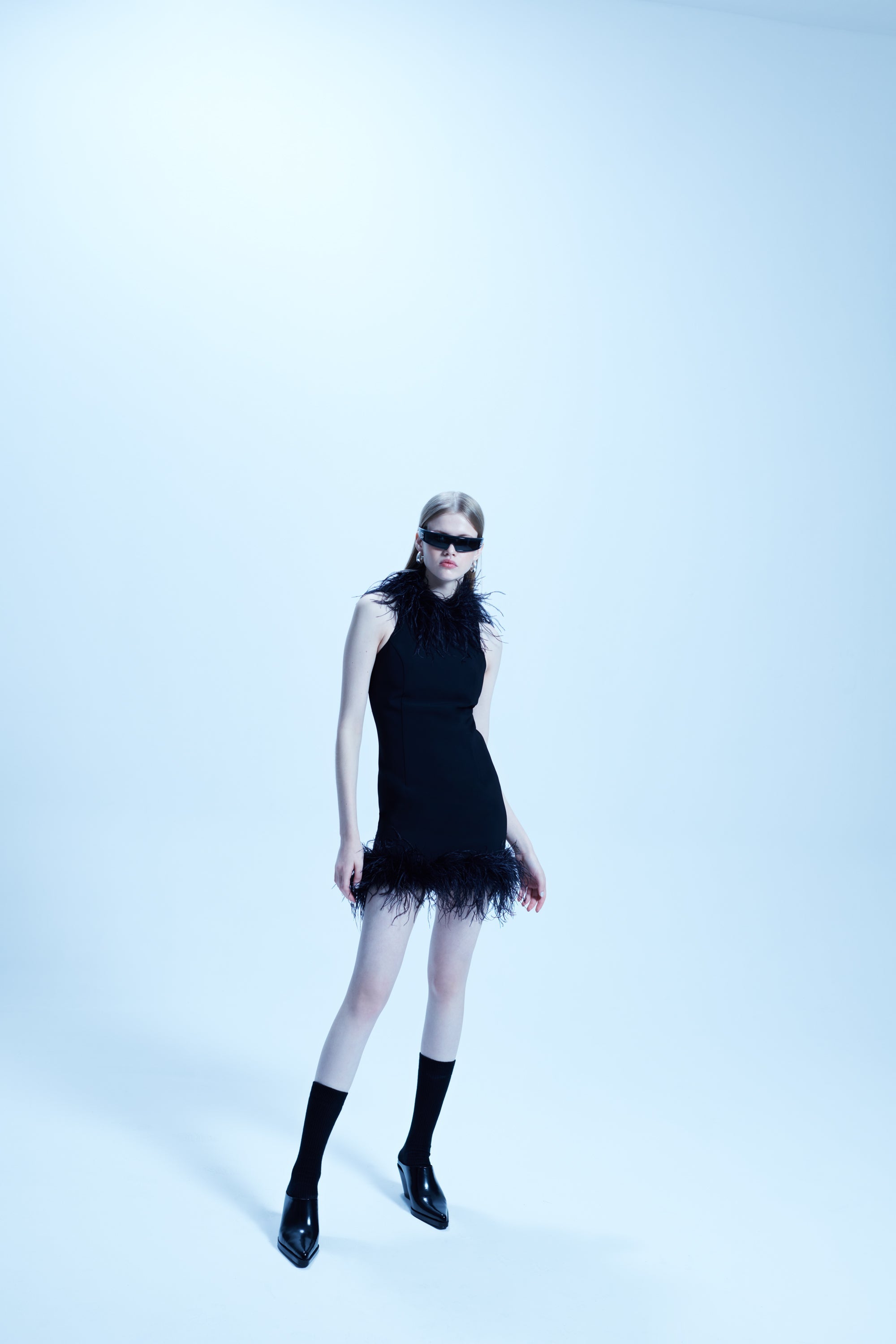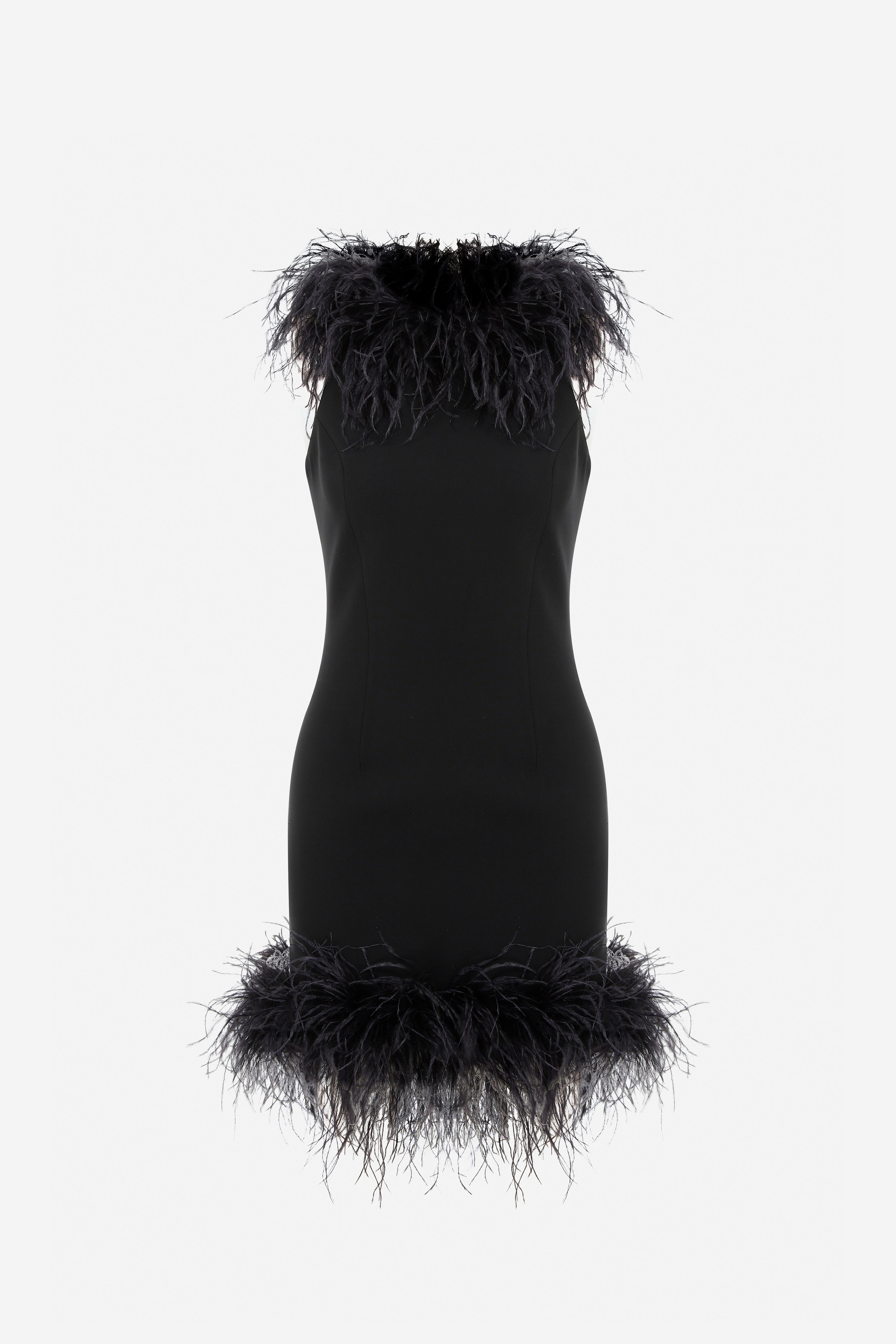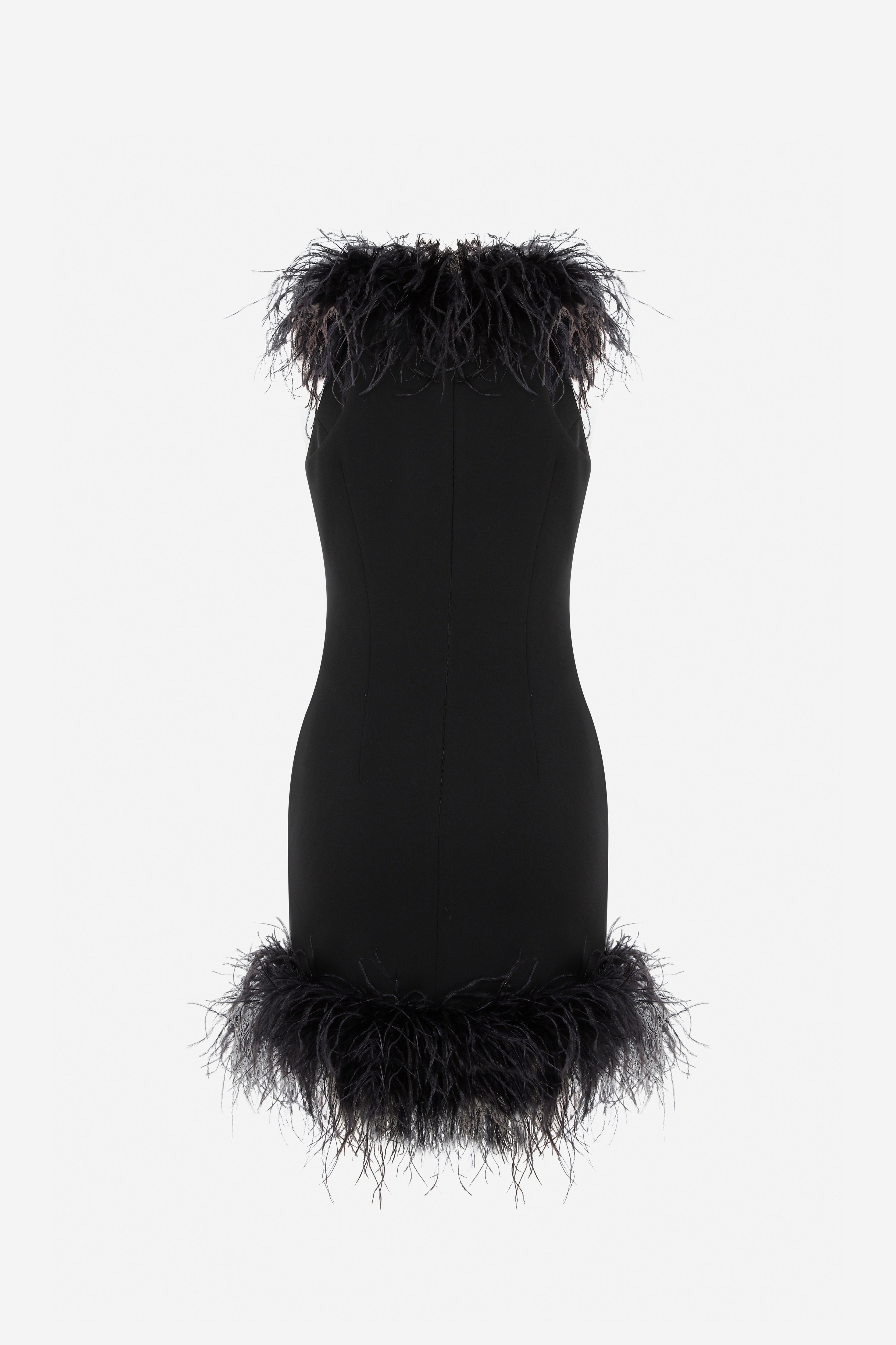 - Feather Trimmed Halter Neck Mini Dress