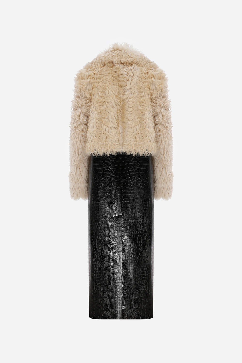 Avery - Vegan Crocodile Leather Detailed Nodal Shearling Long Coat