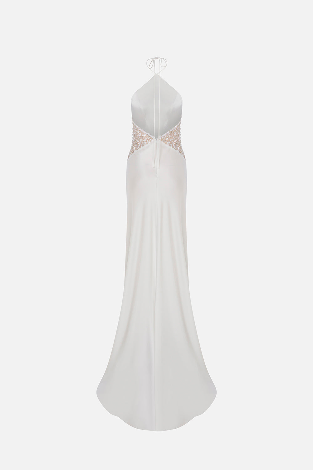 Zoya - Triangle Neck Satin Maxi Dress With Sequin Trim