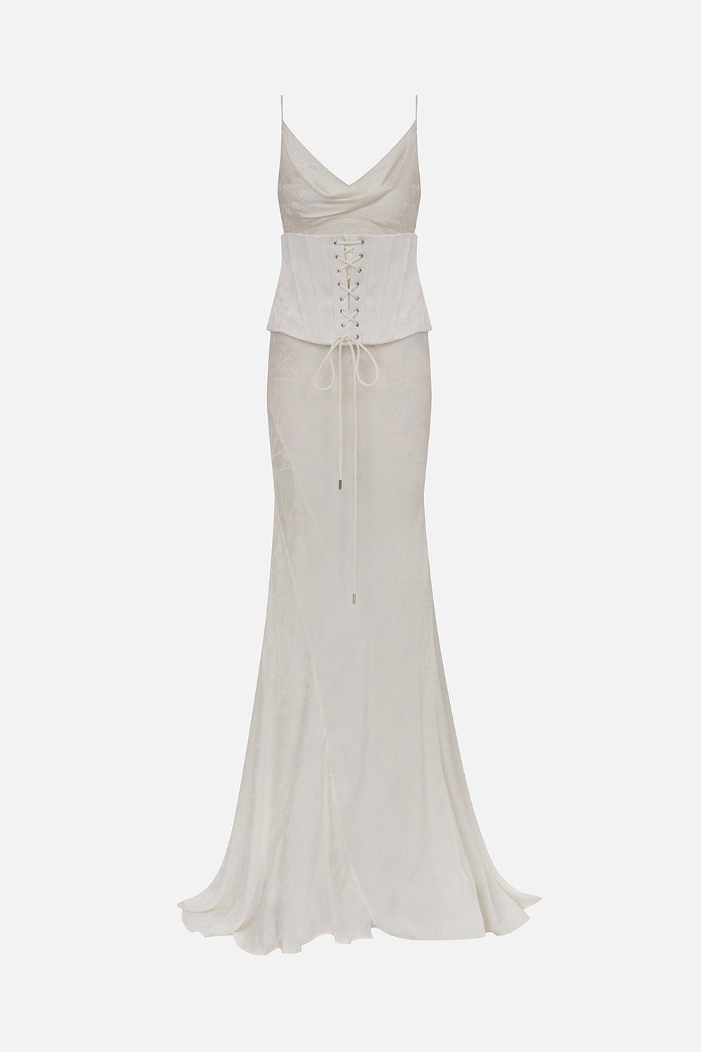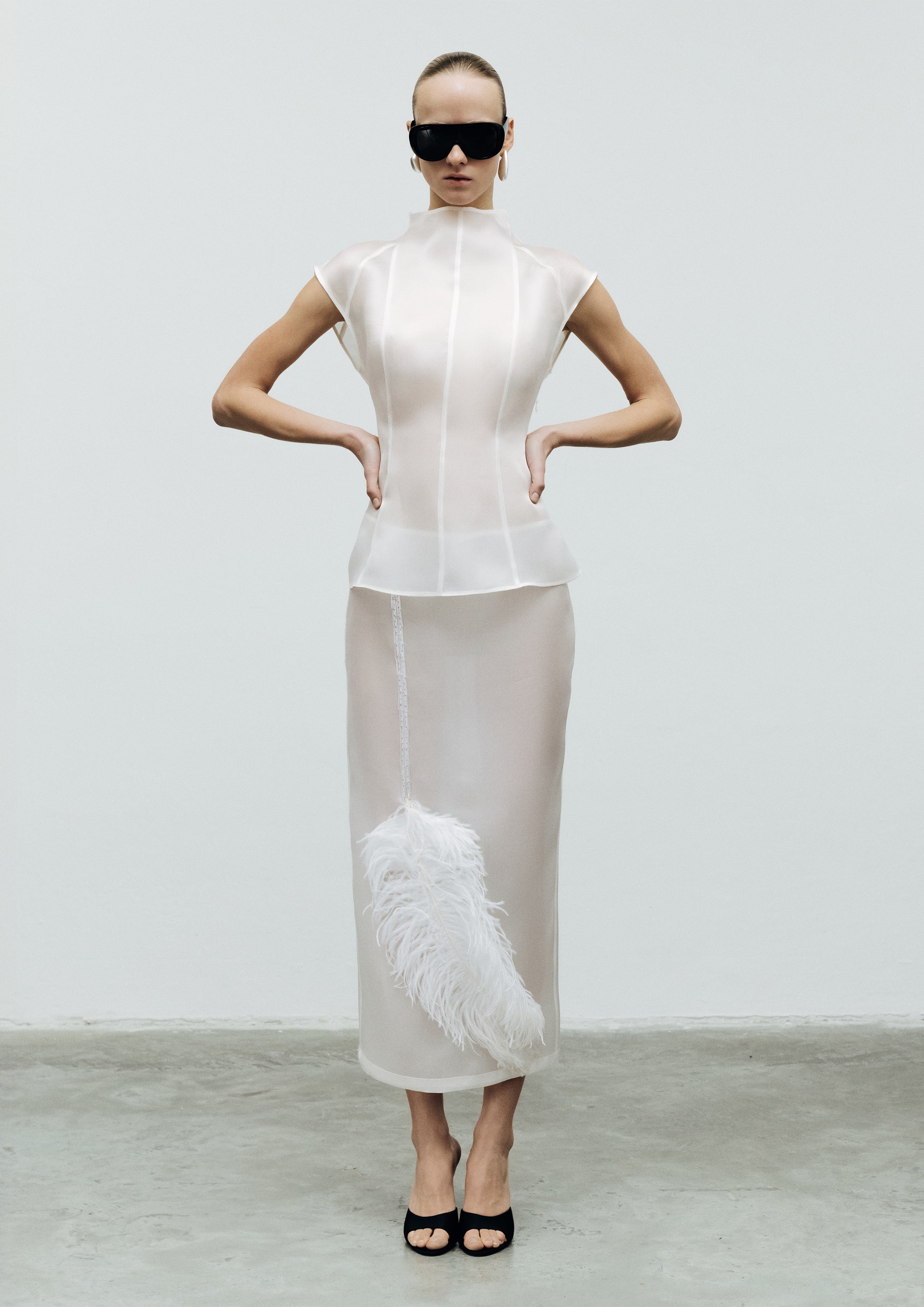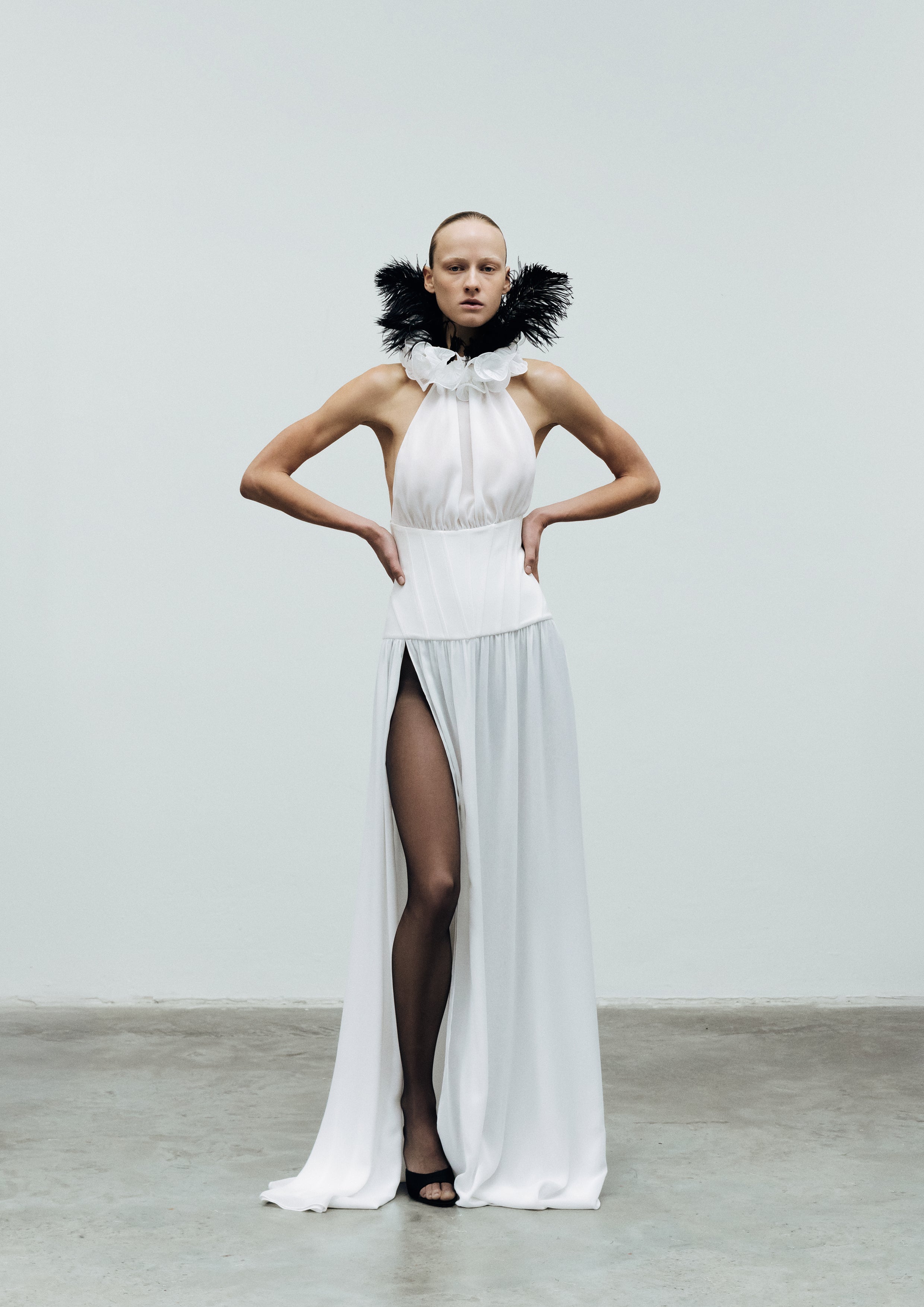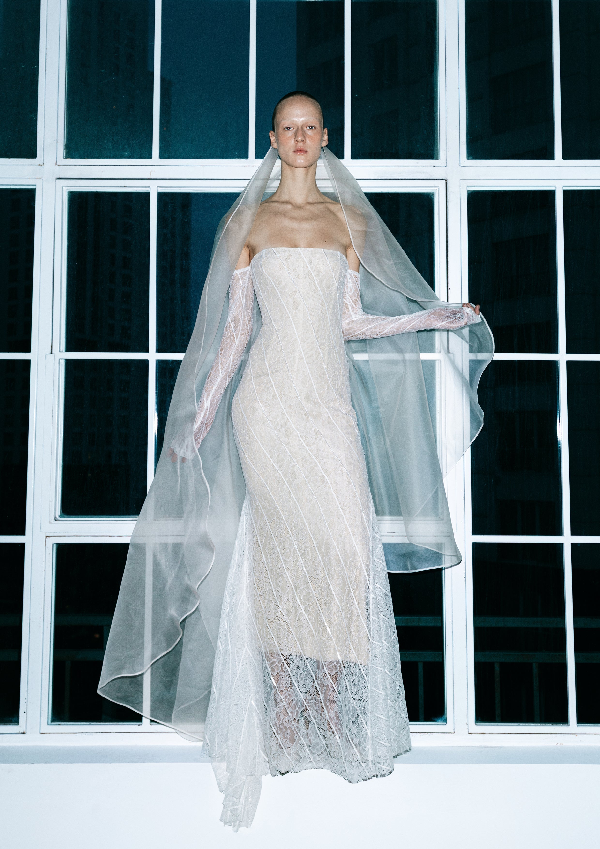 Wrong Room redefines what it means to stand in the “right place.”This collection speaks to a woman who doesn’t measure herself againstexpectations.She understands tradition, respects its structure, but refuses to beconfined by it.What others call rules, she sees as references — to be edited, shifted, orleft behind.She may appear to be in the wrong room,but only because the room was never designed with her in mind.Timeless silhouettes are reworked with intention.Proportions stretch, details interrupt familiarity, and classic fabrics takeon a sharper presence.Lace feels structured rather than delicate.Fluid forms are grounded with strength.Nothing is decorative for the sake of tradition — everything has a reason.This woman doesn’t dress to blend in or to perform a role.She dresses with clarity.Confident in restraint, feminine on her own terms, strong withoutexplanation.Wrong Room is not about being misplaced.It’s about choosing a different space —and owning it completely.