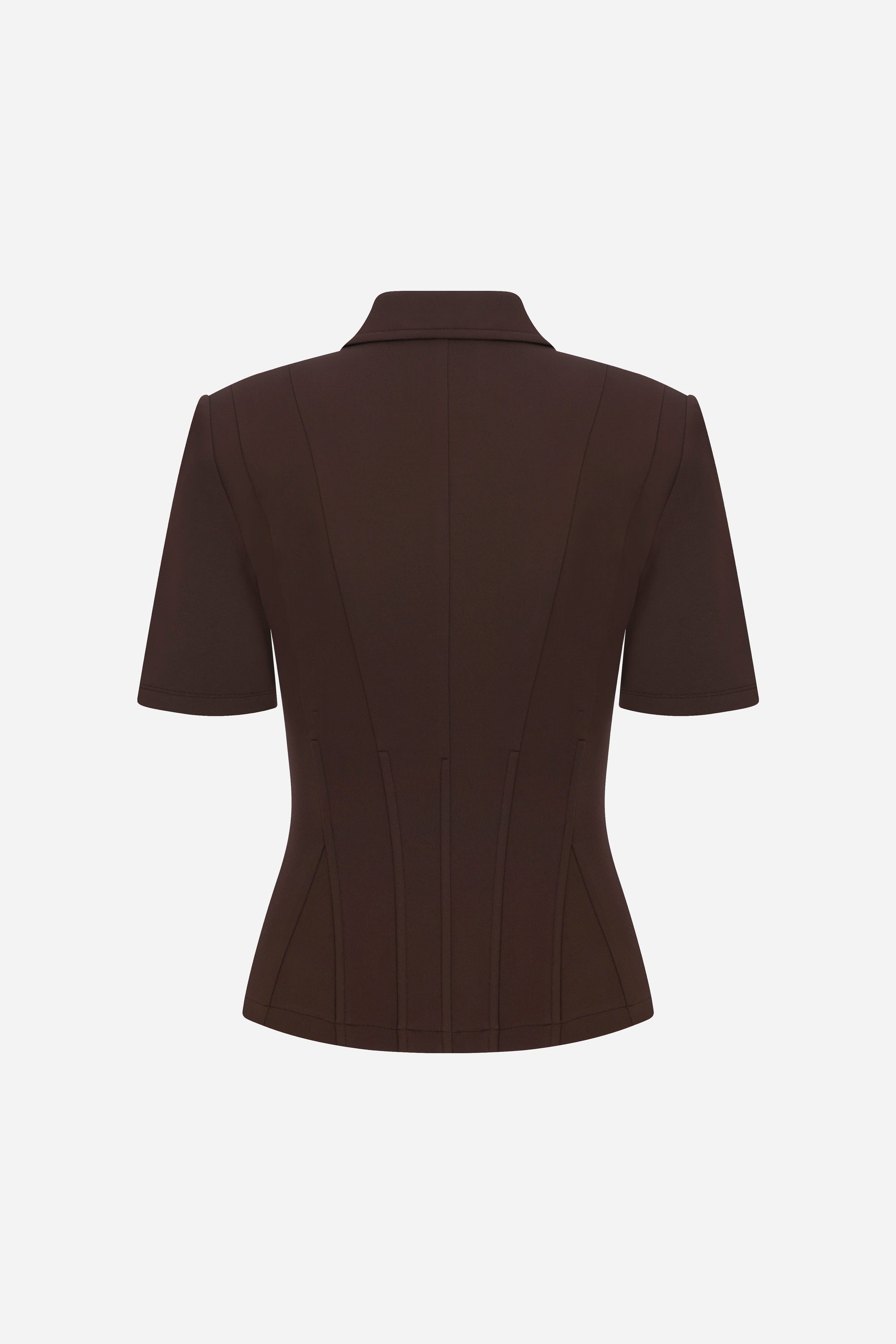 Kate - Polo Neck Corset Detailed T-Shirt in Brown