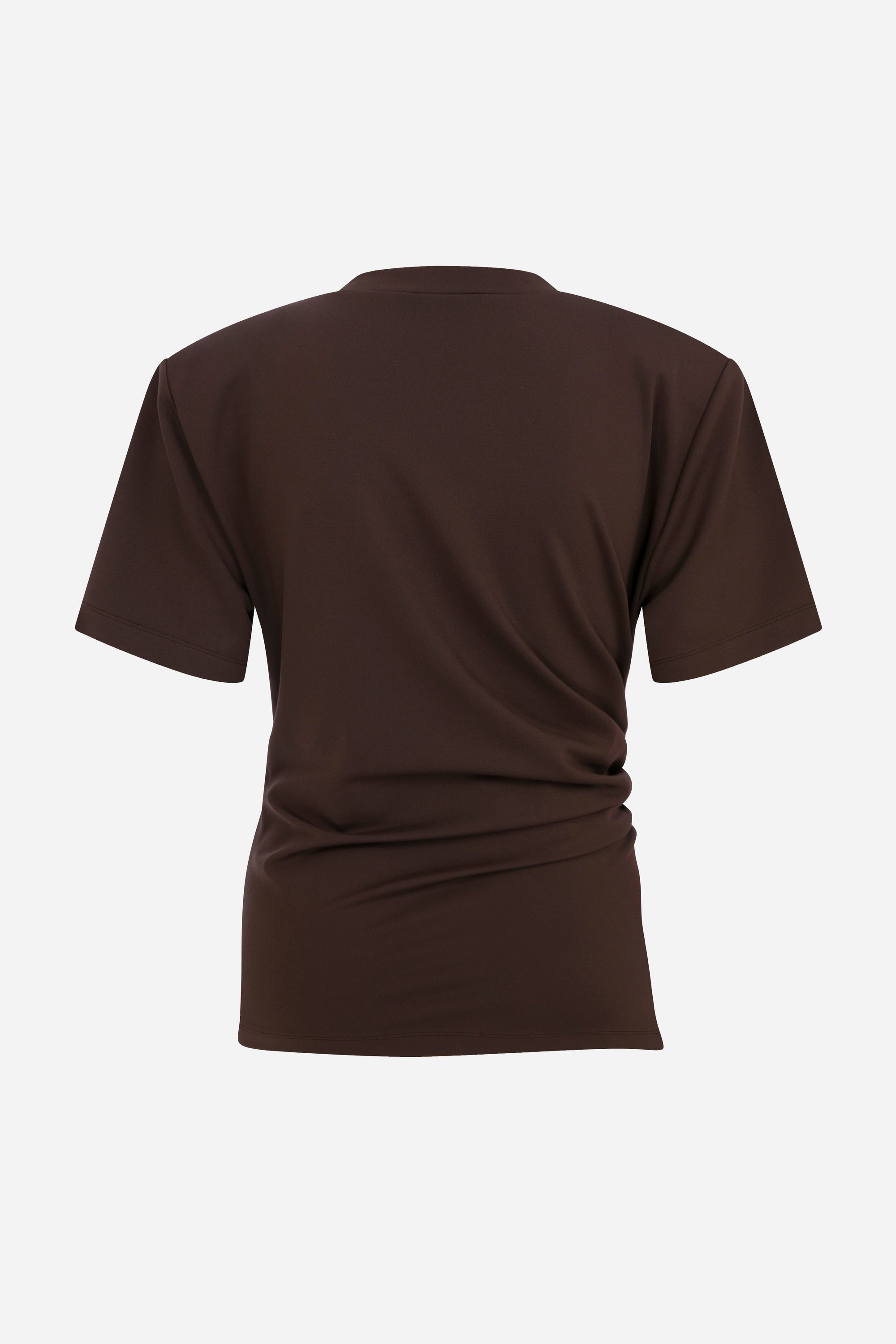 Lilia - Draped T-Shirt With Shoulder Pads in Brown