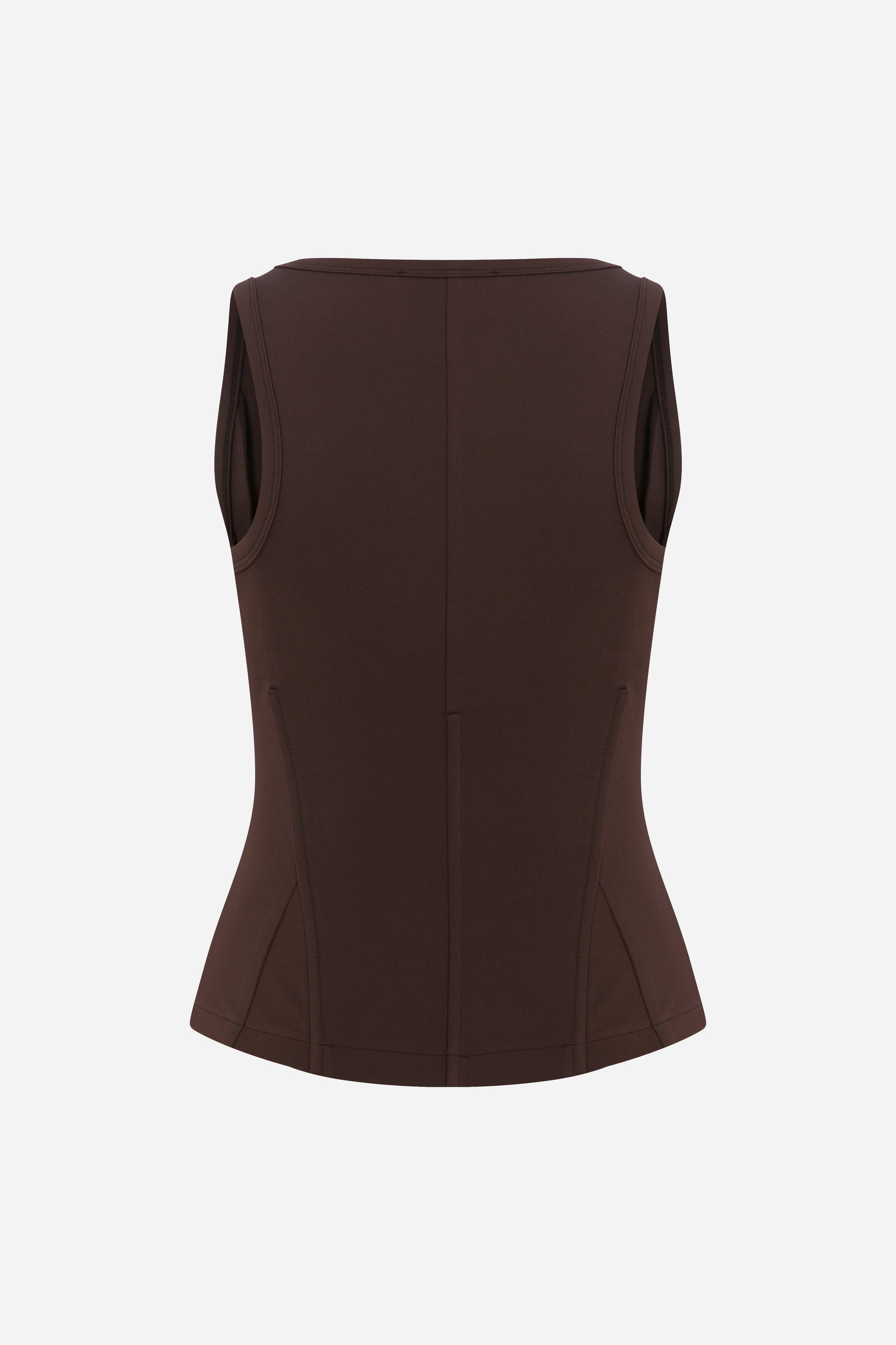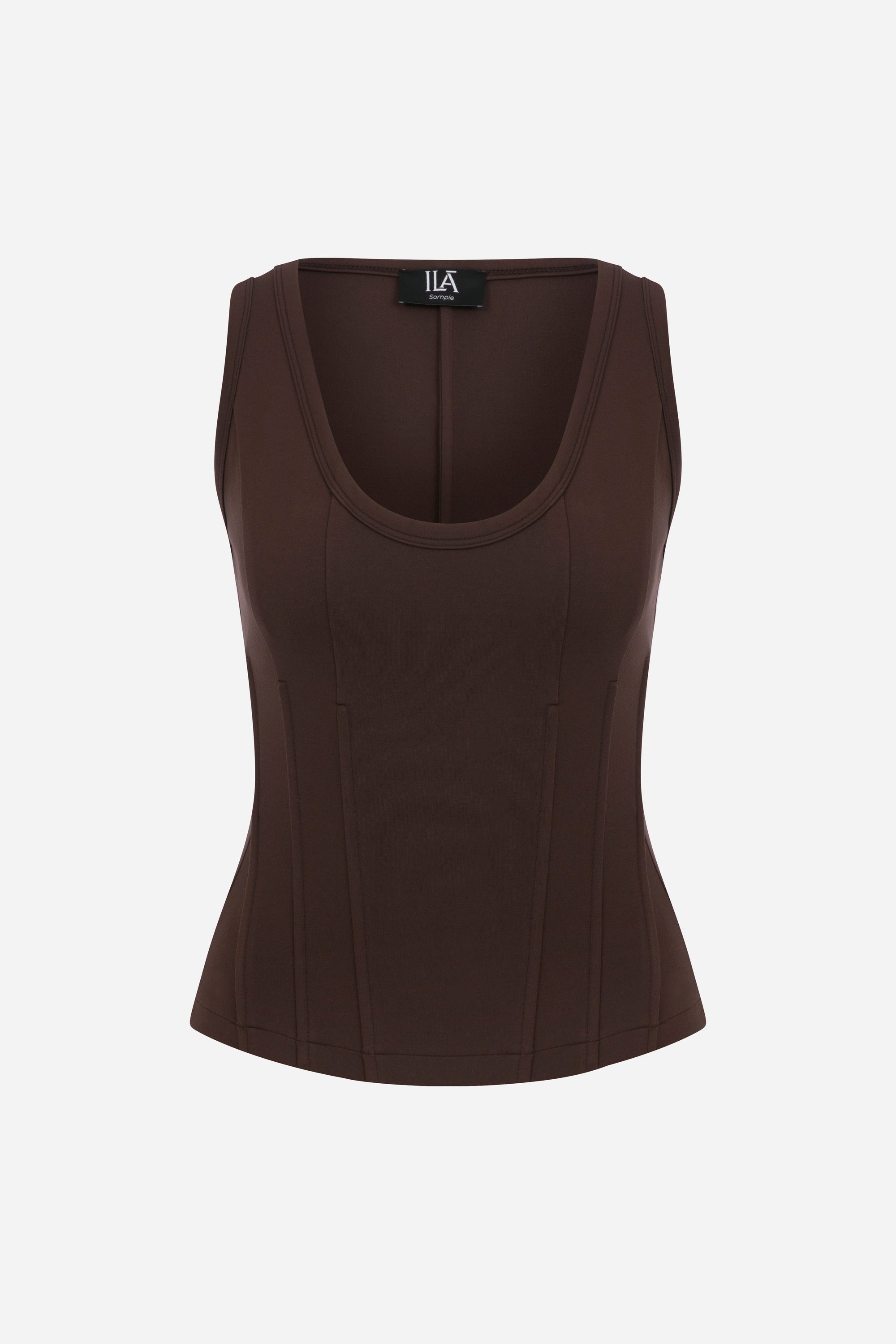 Lilou - U Neck Corset Detailed Tank Top in Brown
