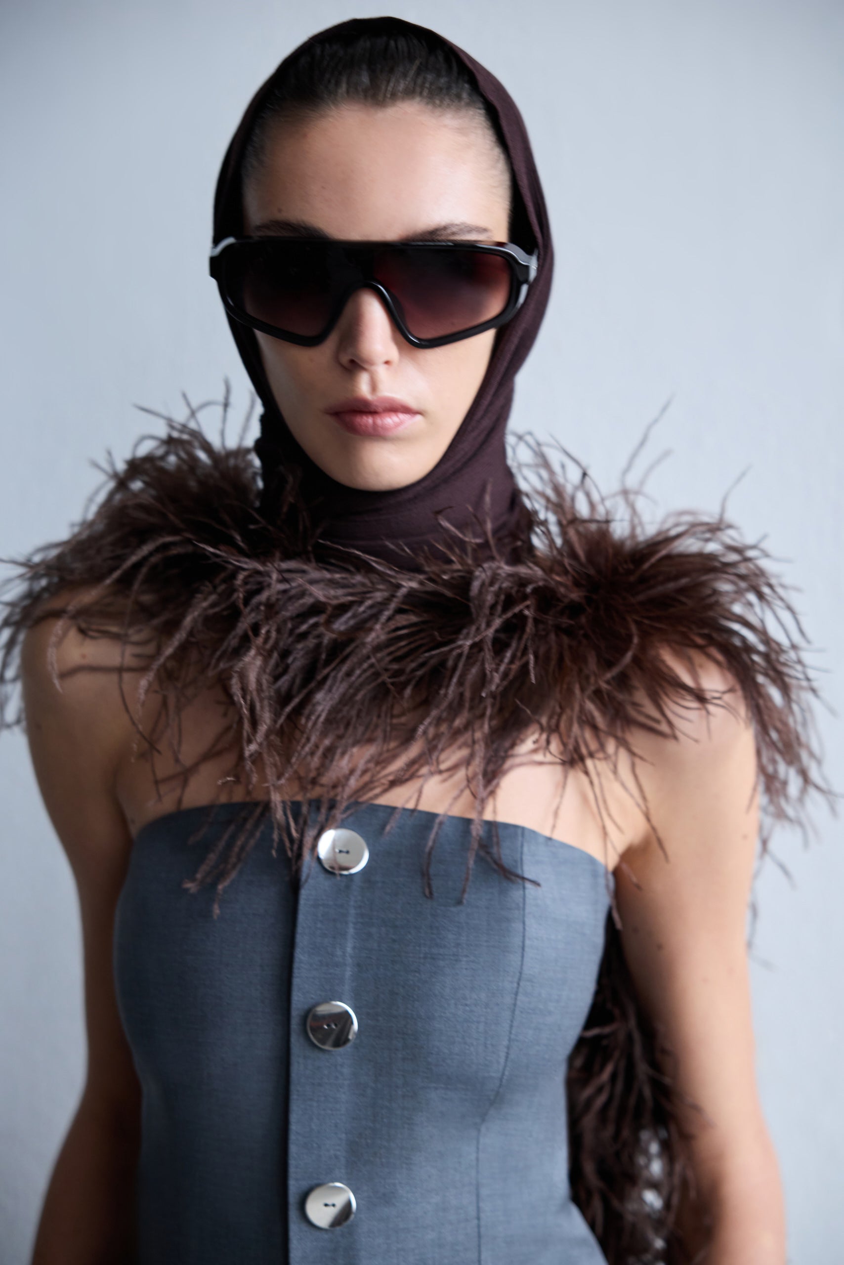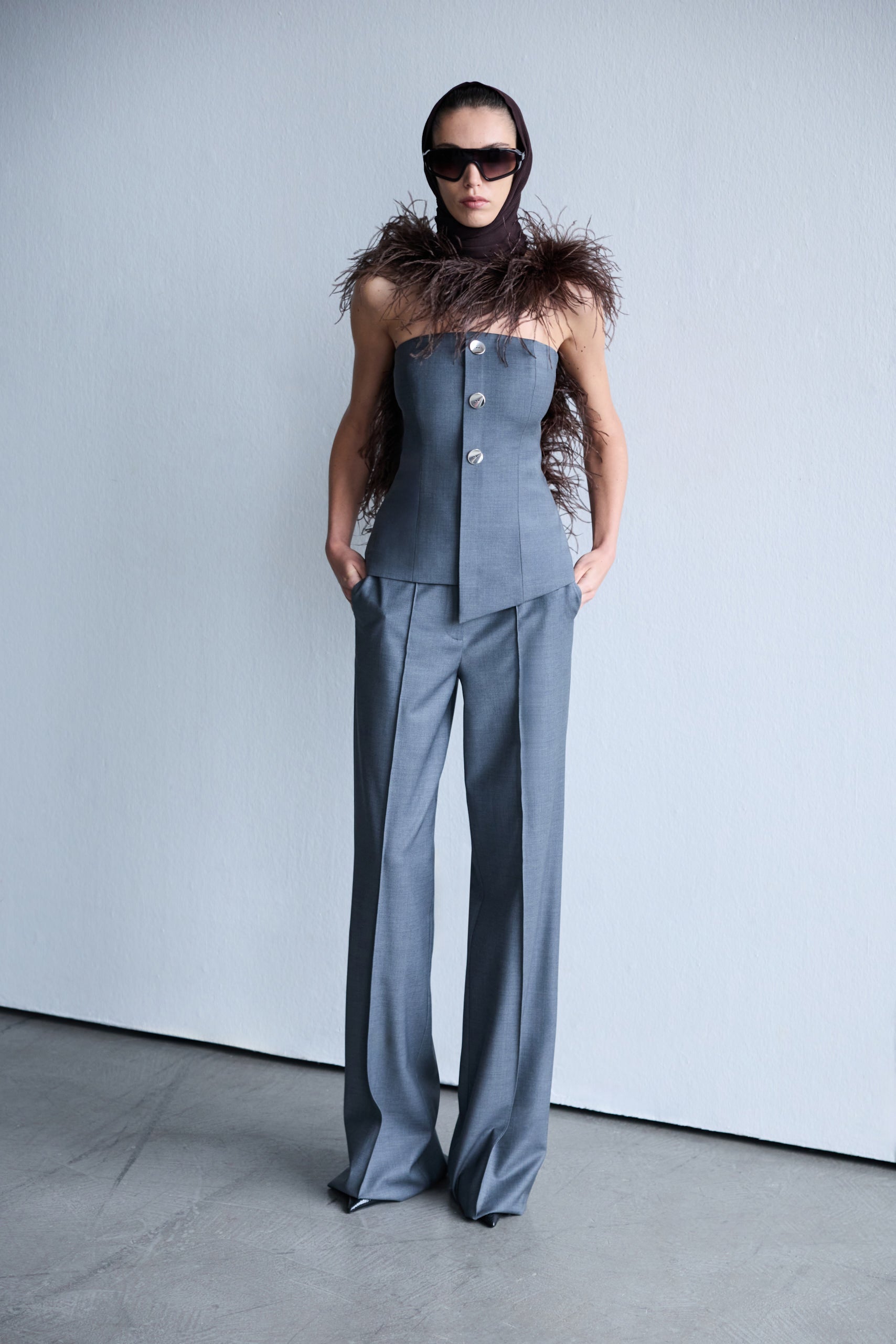 Eve - Strapless Wool Top With Button Detail in Grey