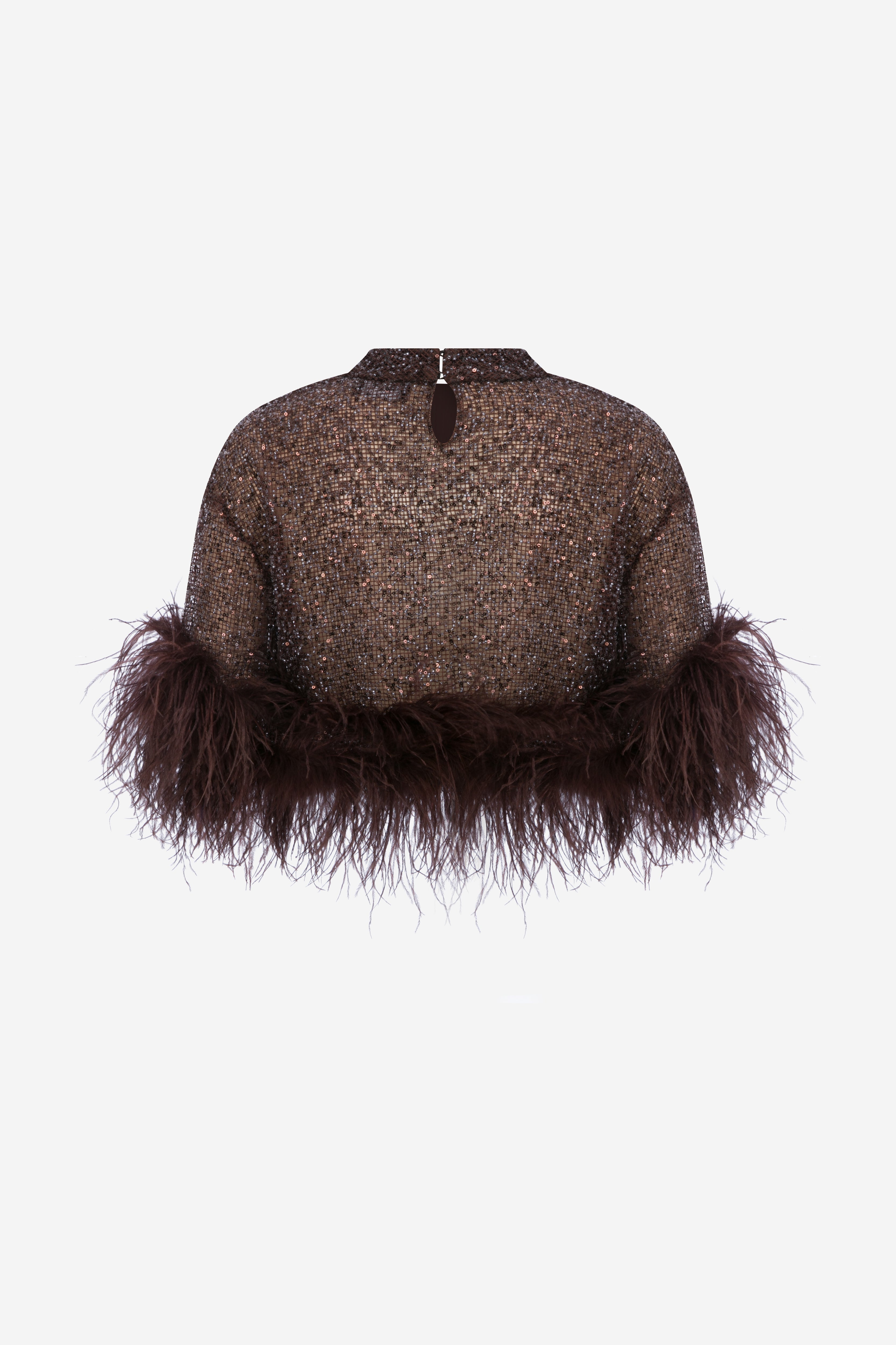 Camille - Sequin Crop Top With Feathers in Brown