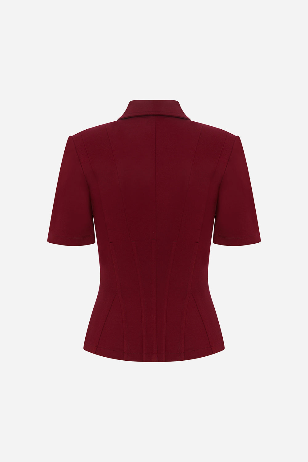 Kate - Polo Neck Corset Detailed T-Shirt in Burgundy