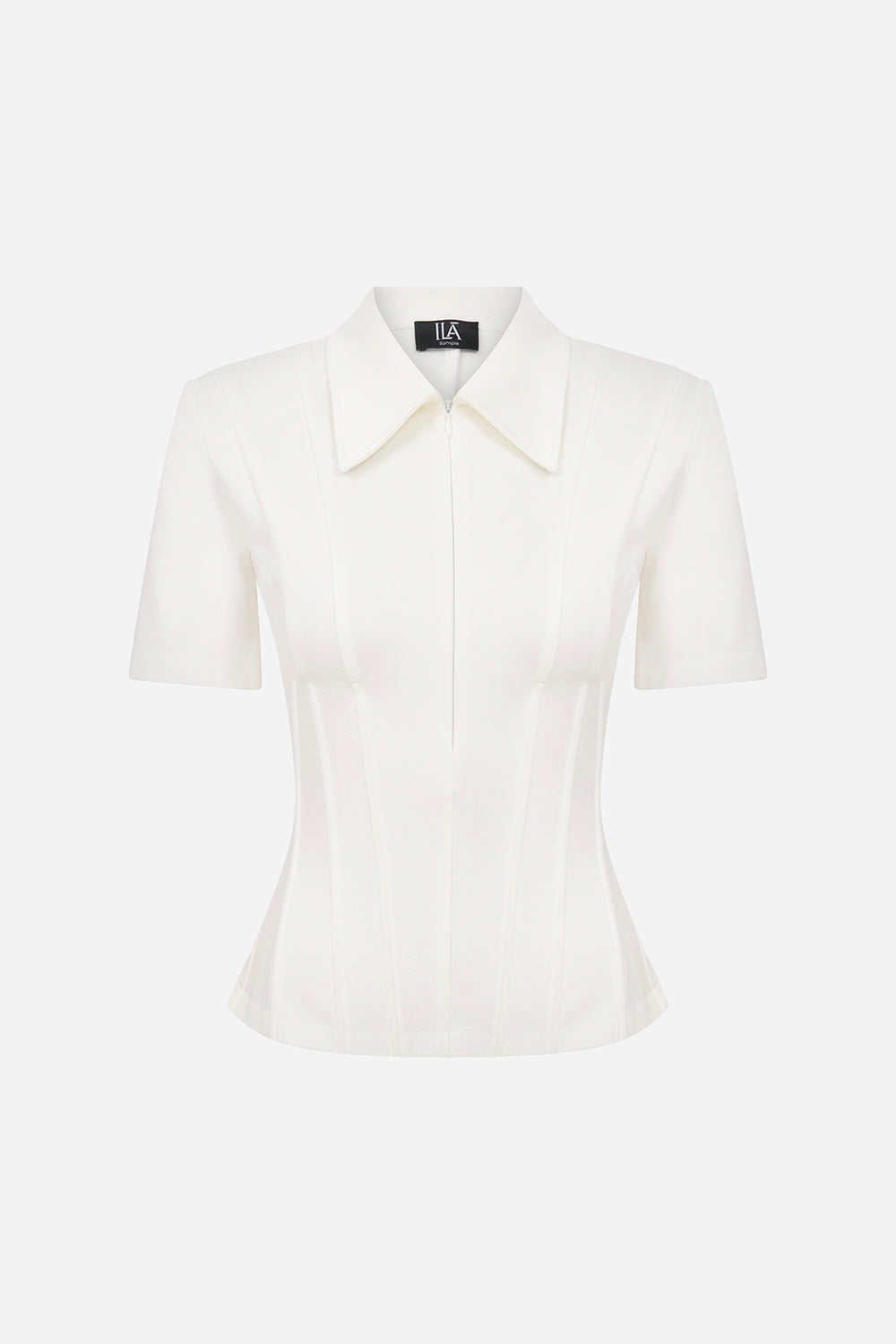 Kate - Polo Neck Corset Detailed T-Shirt in White