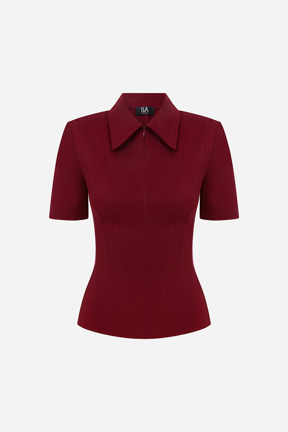 Kate - Polo Neck Corset Detailed T-Shirt in Burgundy