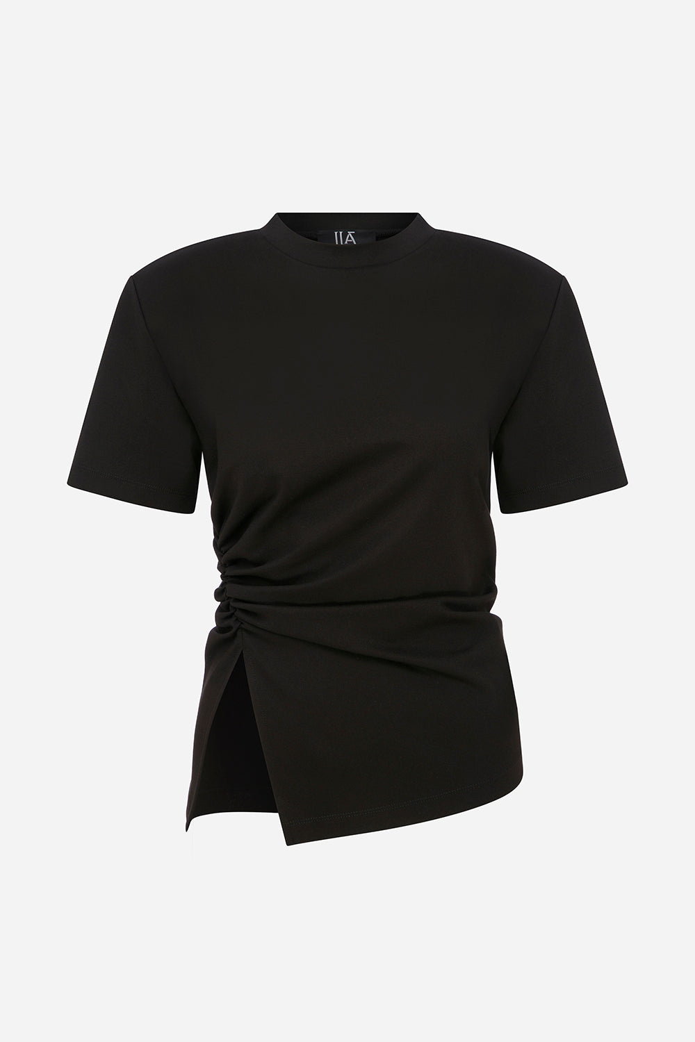 Lilia - Draped T-Shirt With Shoulder Pads in Black