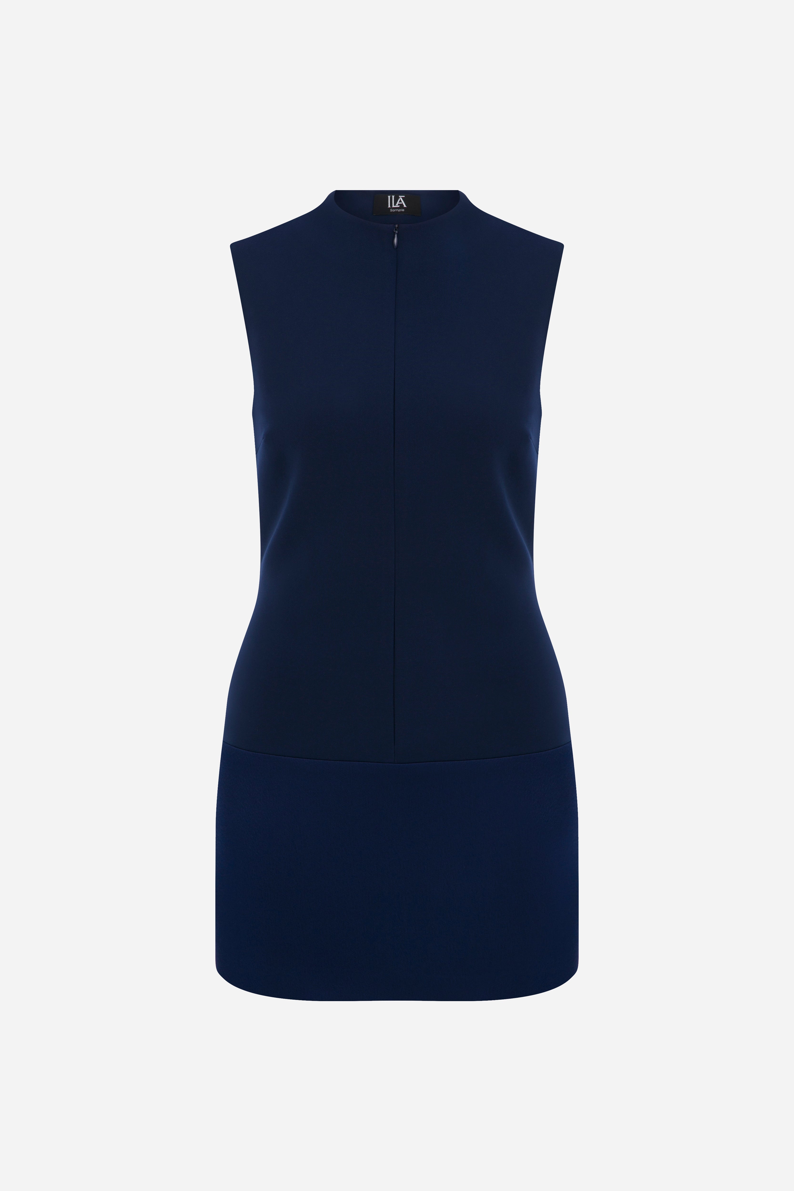 Lea - Mini Dress With Satin Detail in Navy Blue