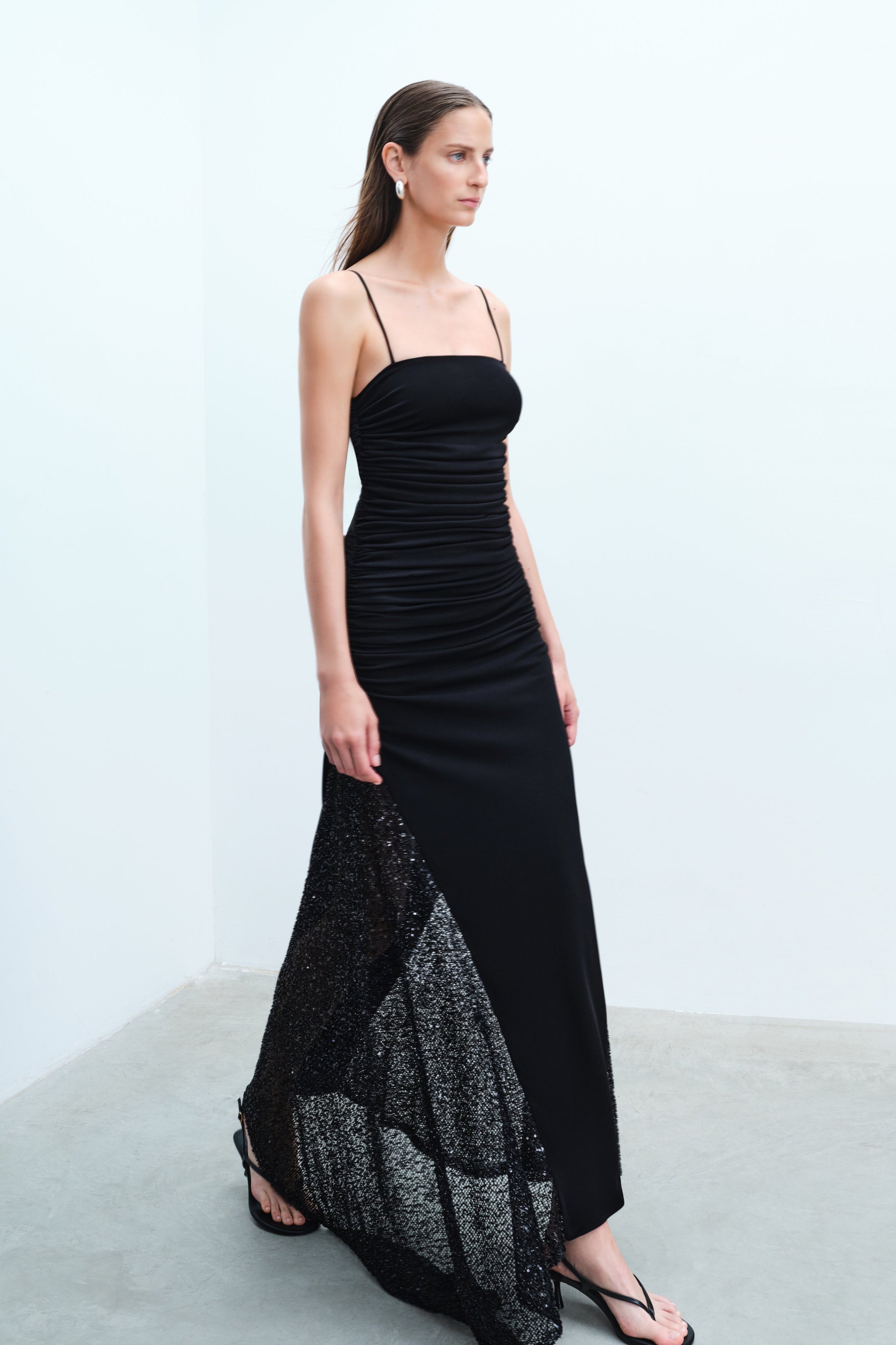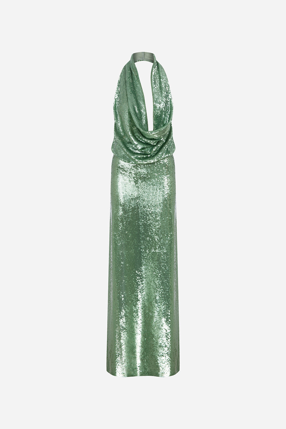 Yuna - Cowl Neck Sequin Maxi Dress With Front Slit