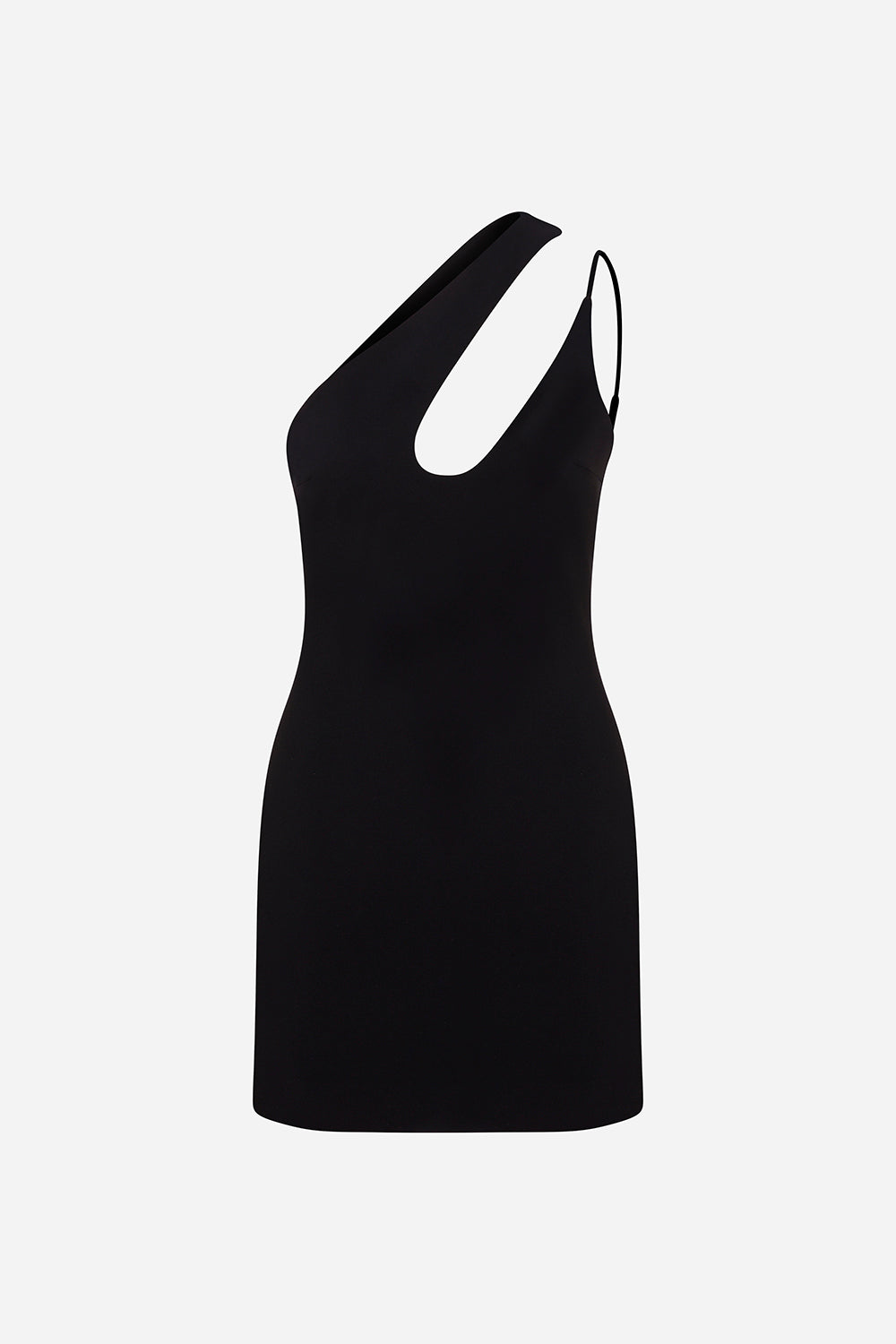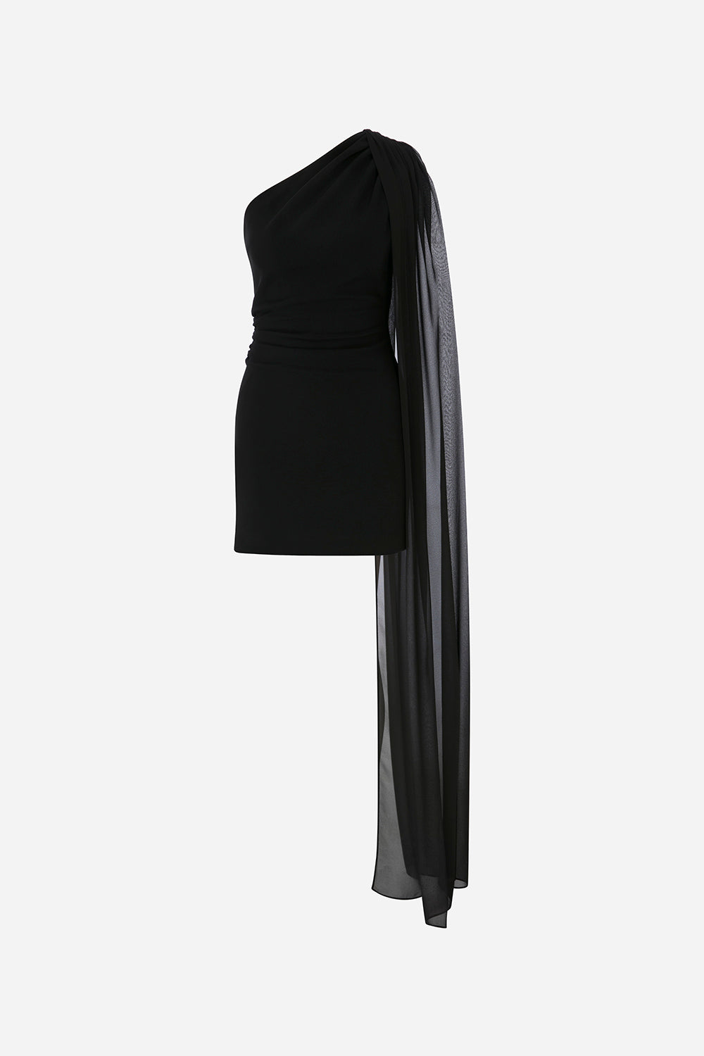 Mery - One Shoulder Mini Dress With See Through Cape Detail