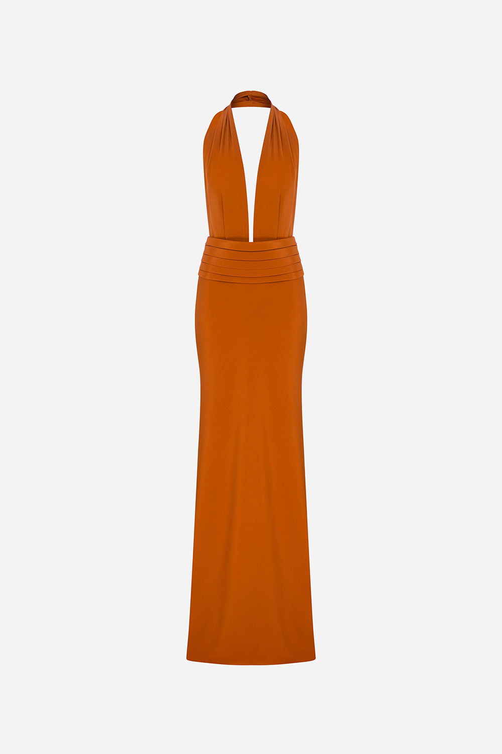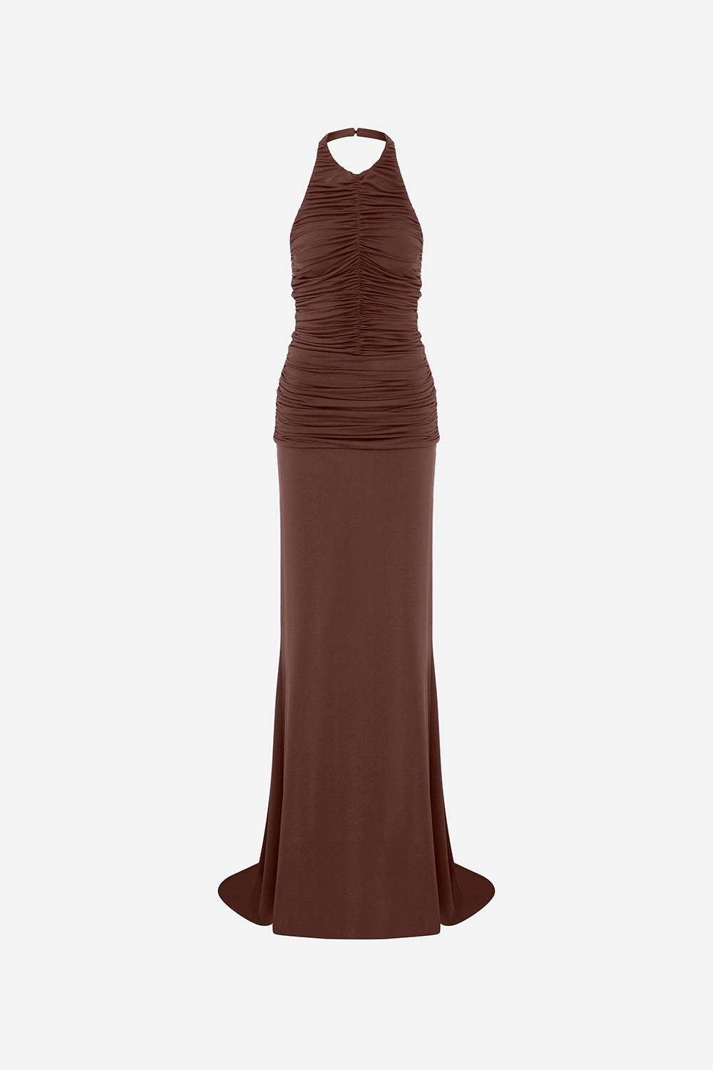Rami - Open-Back Jersey Maxi Dress With Train in Brown
