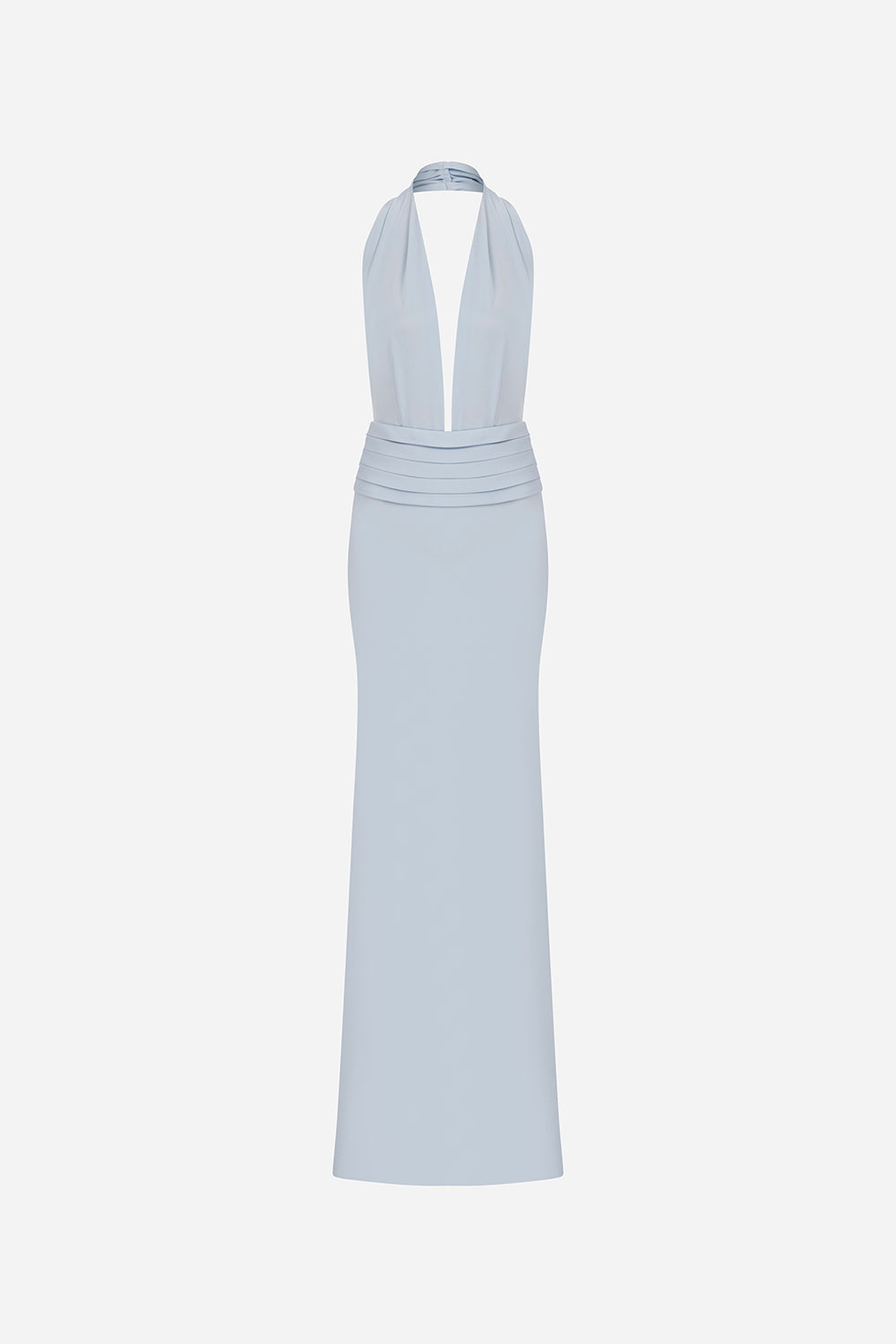 Rami - Open-Back Jersey Maxi Dress With Train in Navy Blue