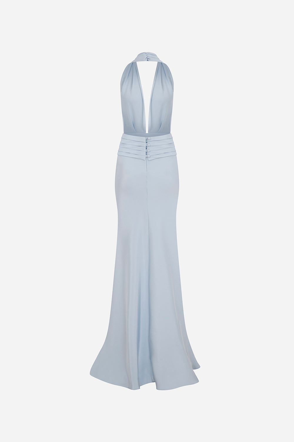 Brice - One Shoulder Satin Maxi Dress in Blue