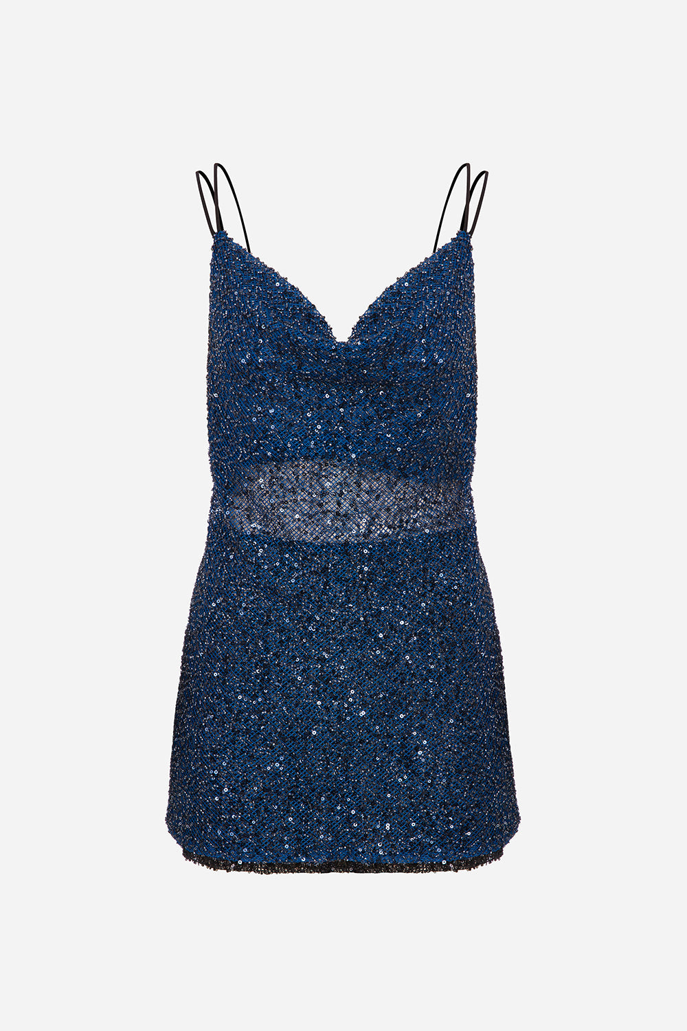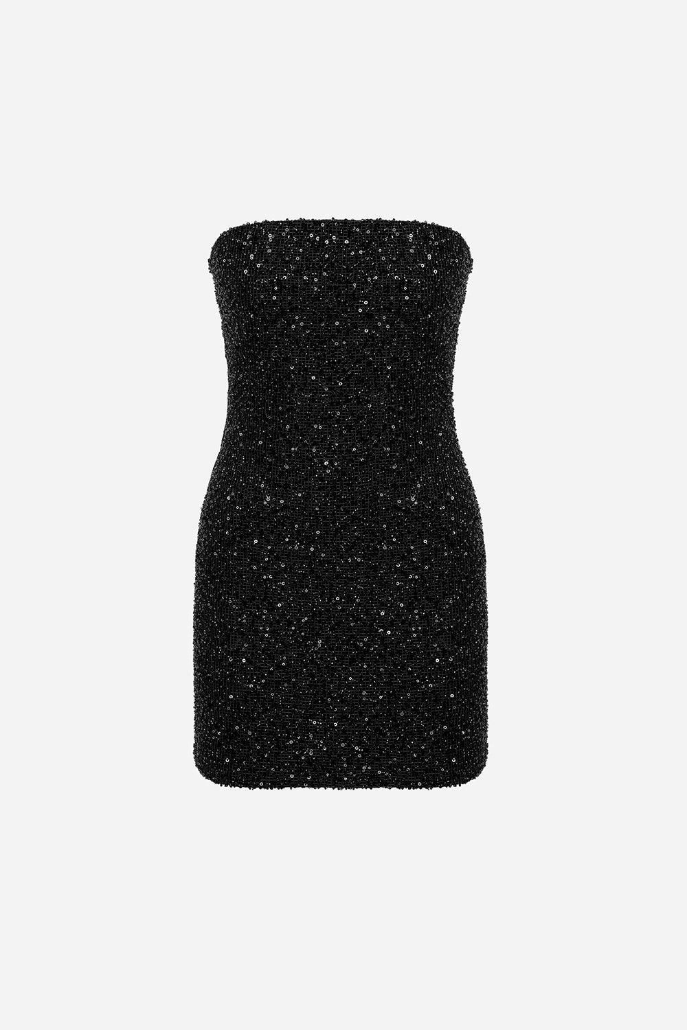 Mai - Strapless Mini Sequin Dress in Navy Blue