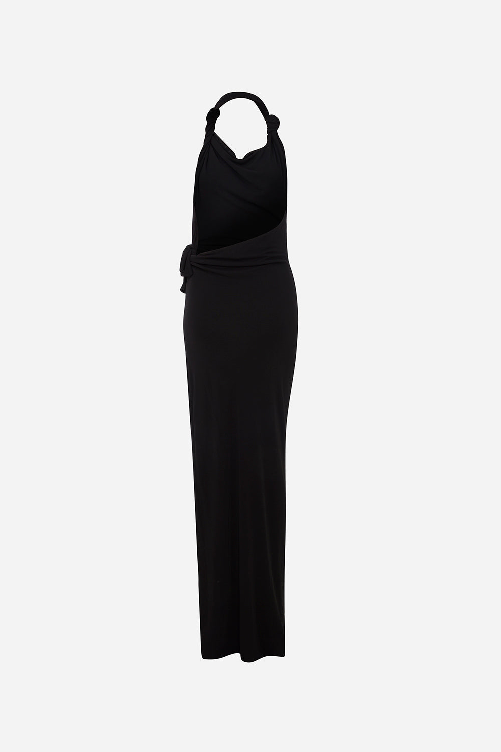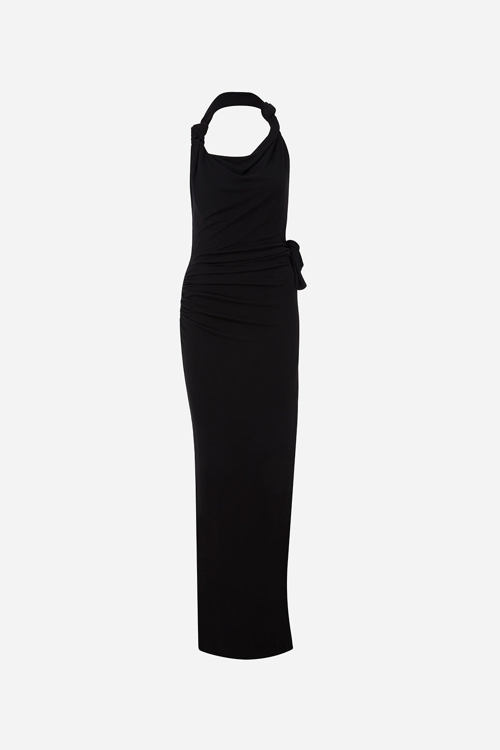 Harper - Asymmetric Cowl Neck Open-Back Jersey Maxi Dress in Black