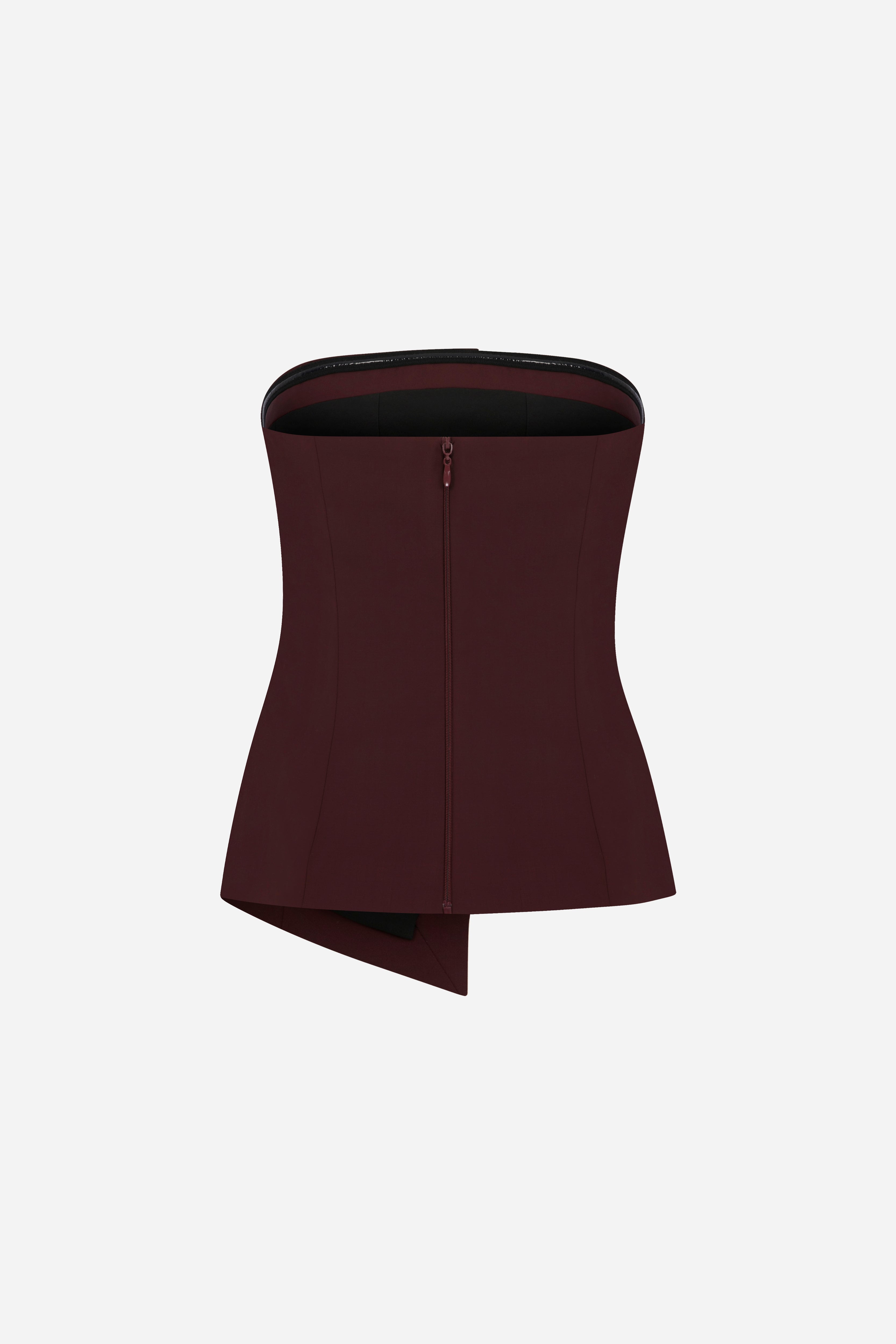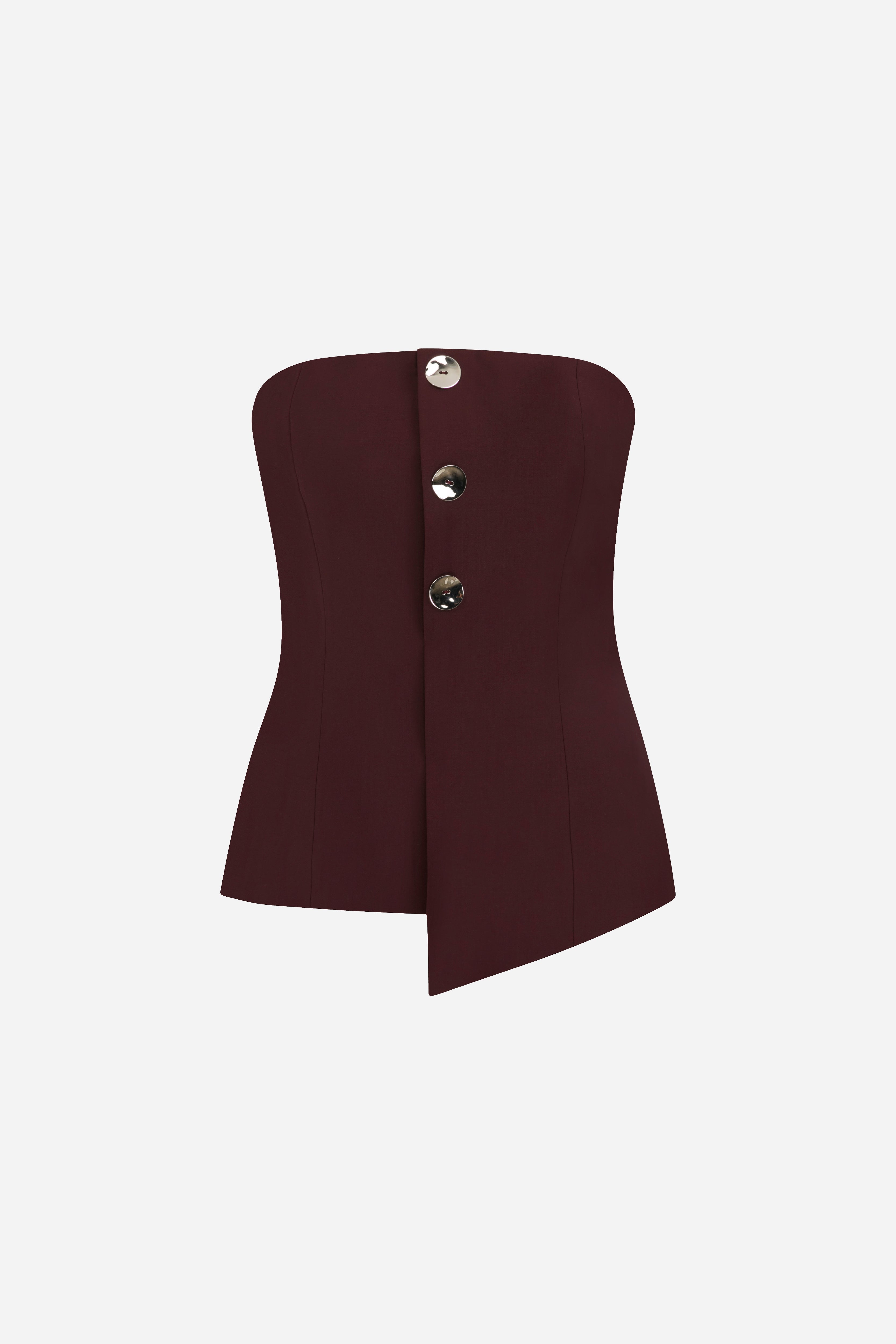 Eve - Strapless Wool Top With Button Detail in Burgundy