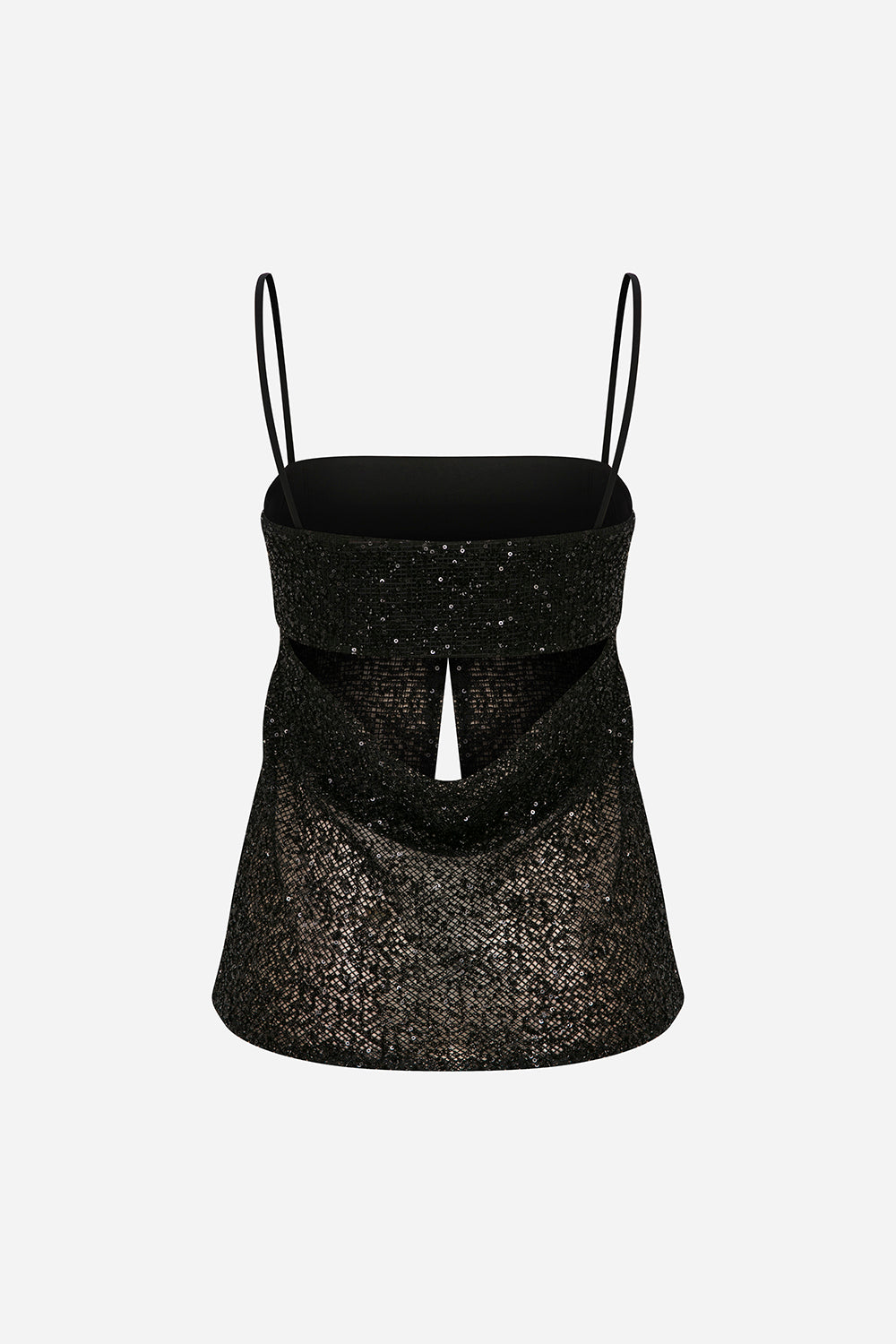 Asita - Sequin Top With Front Slit And Cowl Back in Black
