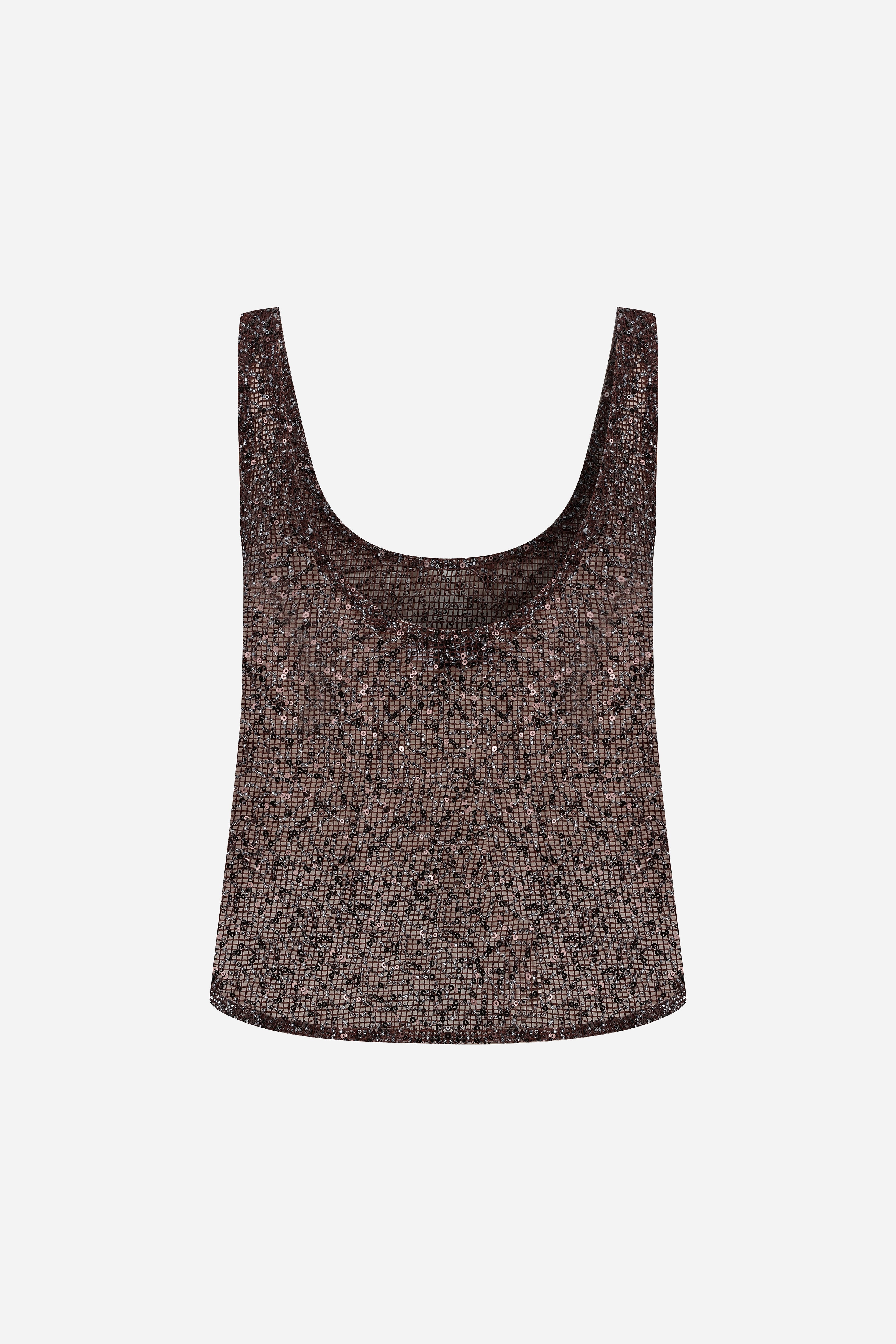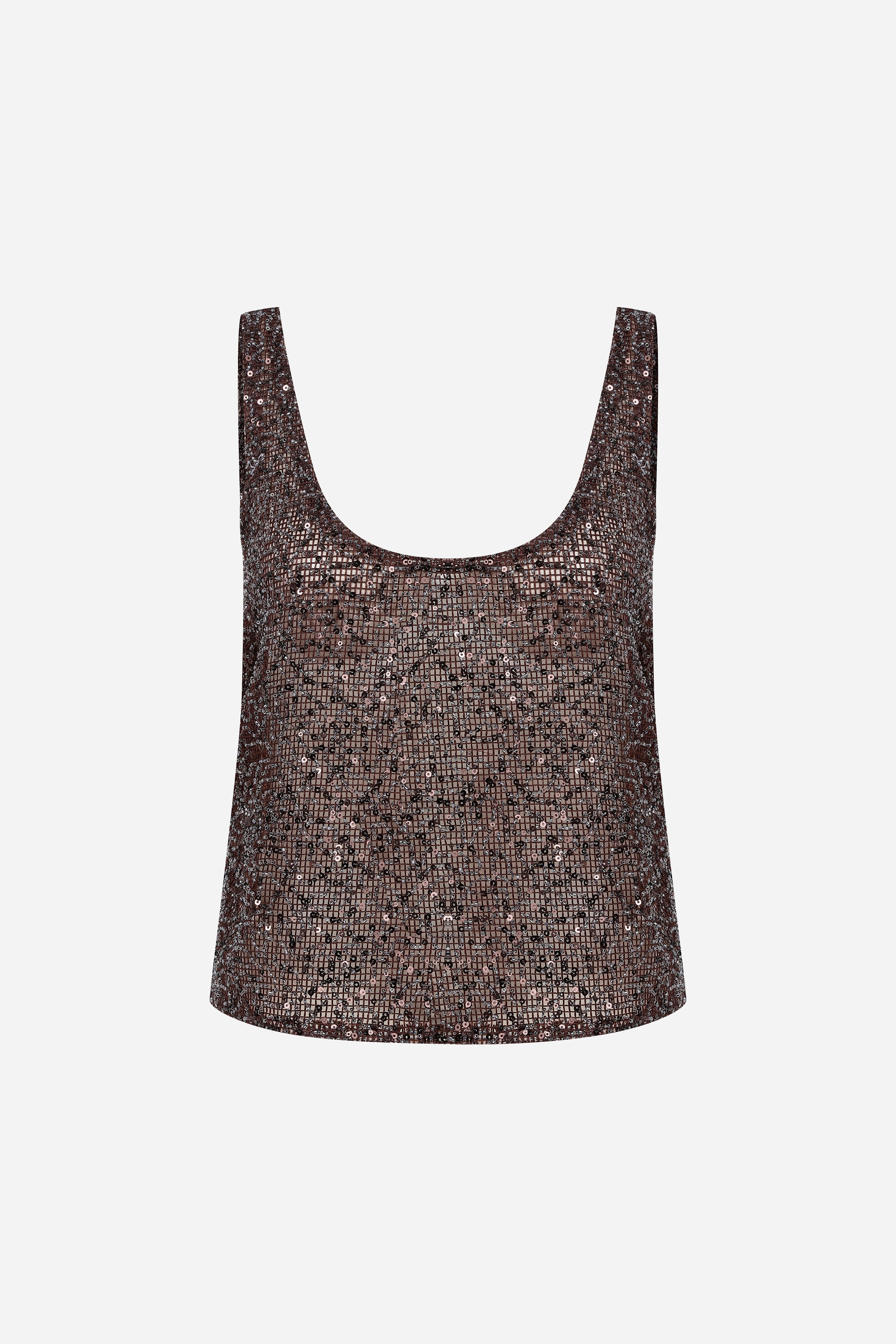 Lend - U-Neck Sequin Tank Top in Brown