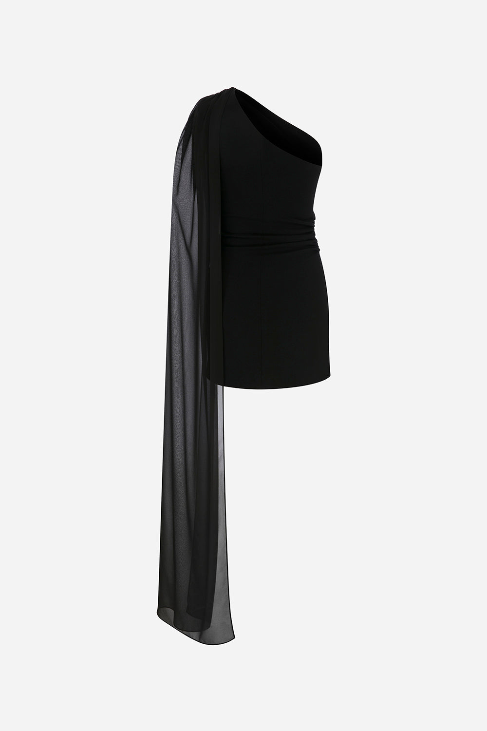 Mery - One-Shoulder Mini Dress With See Through Cape Detail in Black