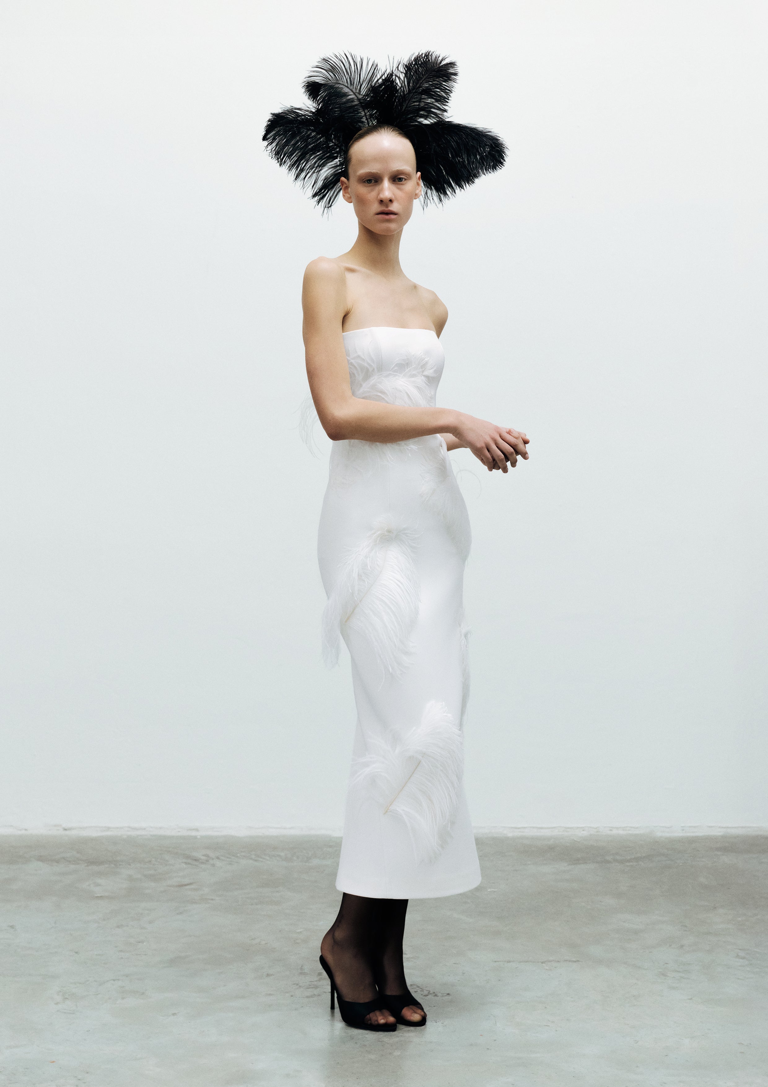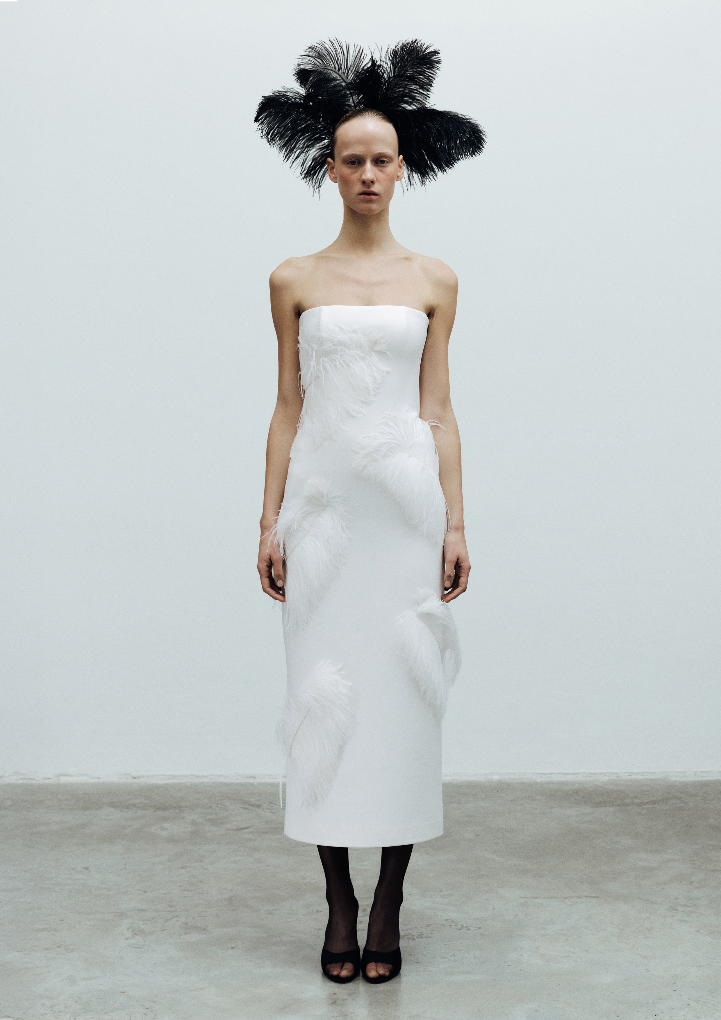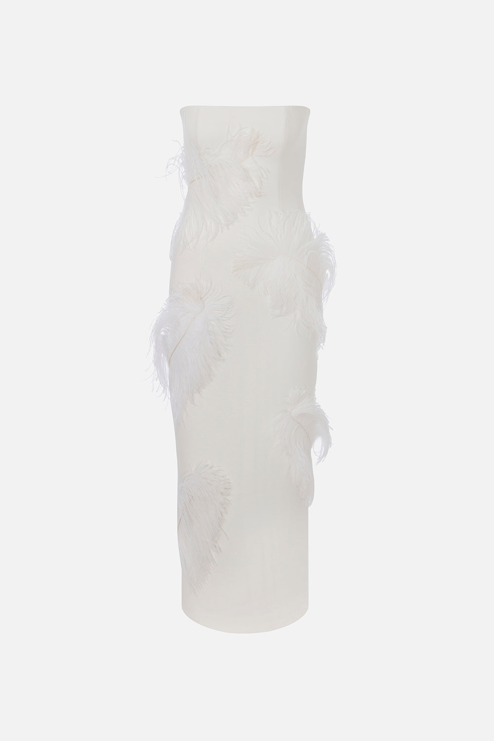 - Strapless Midi Dress With Hand-Crafted Leaf Feather Detail