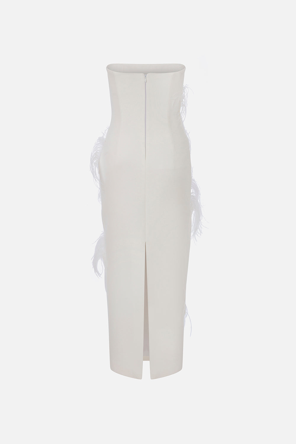Reese - Strapless Midi Dress With Hand-Crafted Leaf Feather Detail