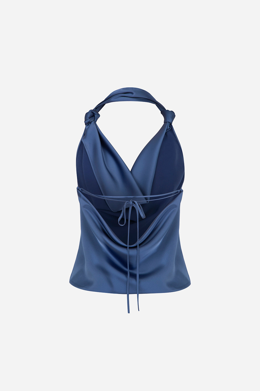 Ria - Cowl Neck Satin Blouse in Navy Blue