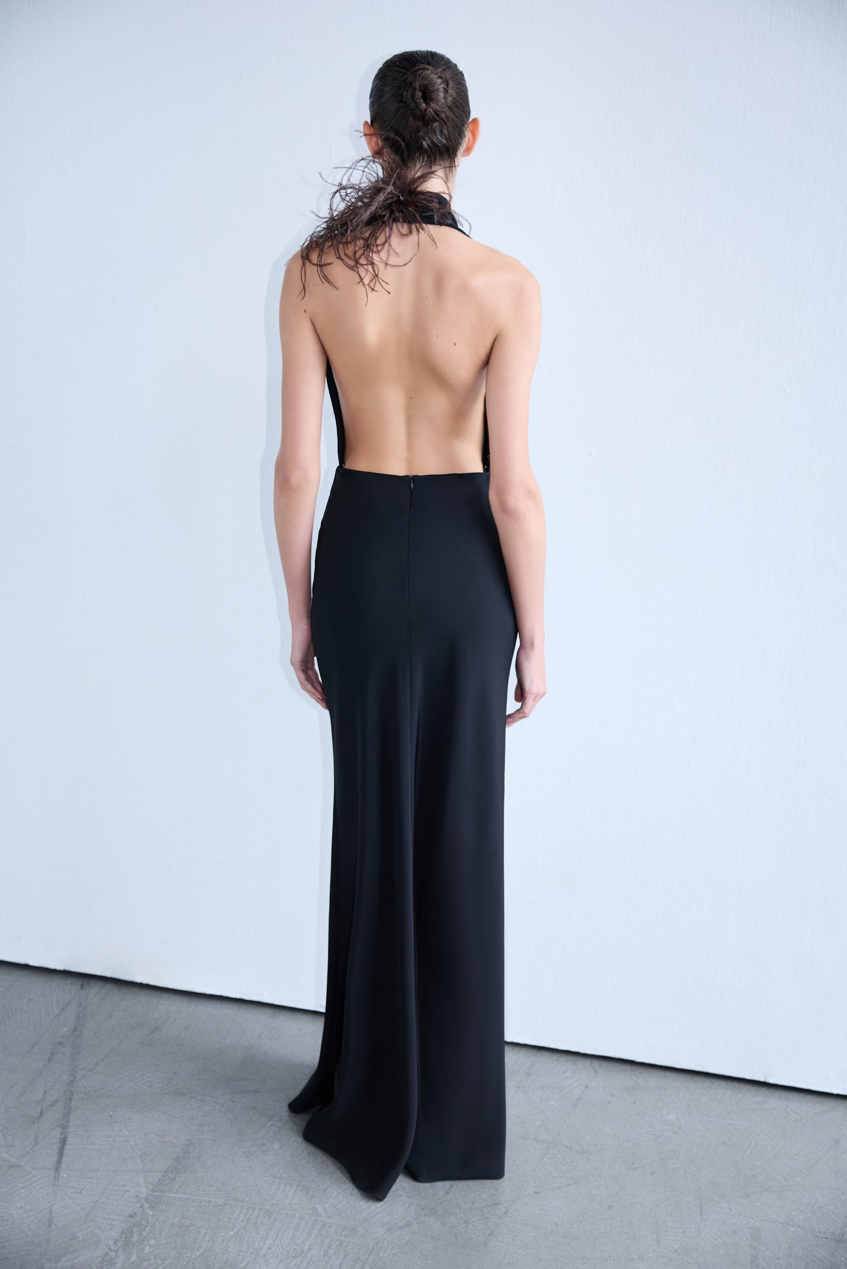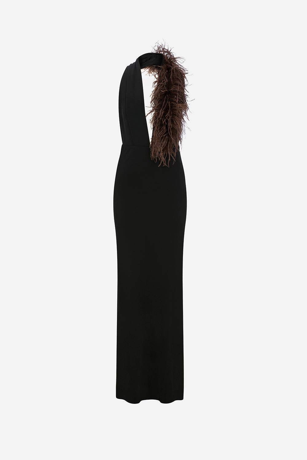 - V-Neck Maxi Dress with Ostrich Feather Detail