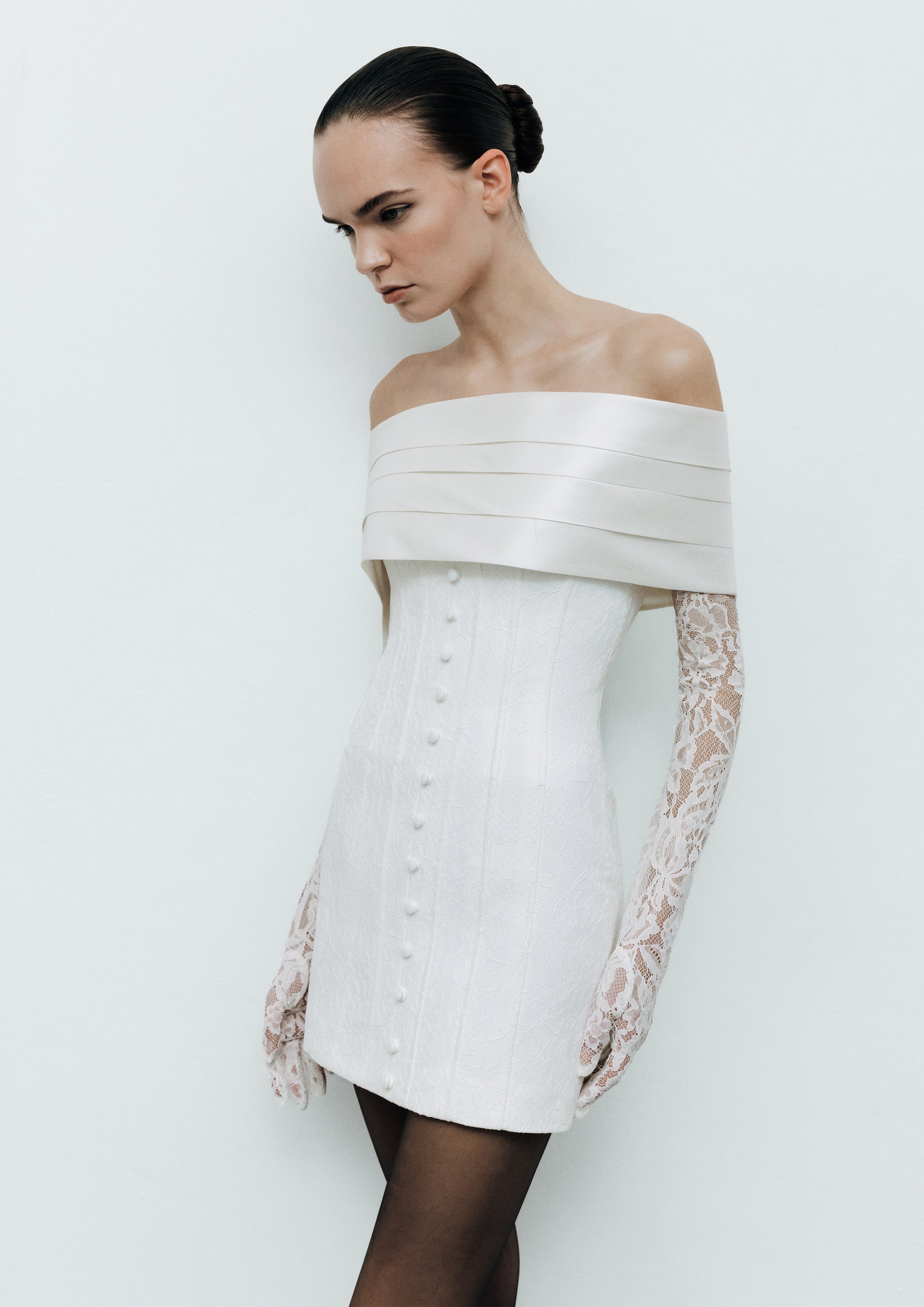 Solene - Lace Mini Dress With Silk Tuxedo Collar